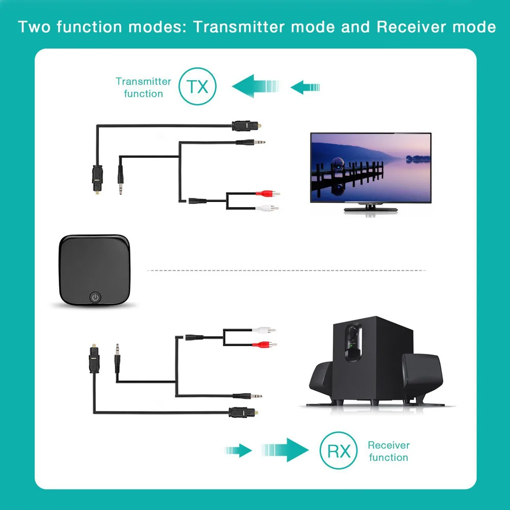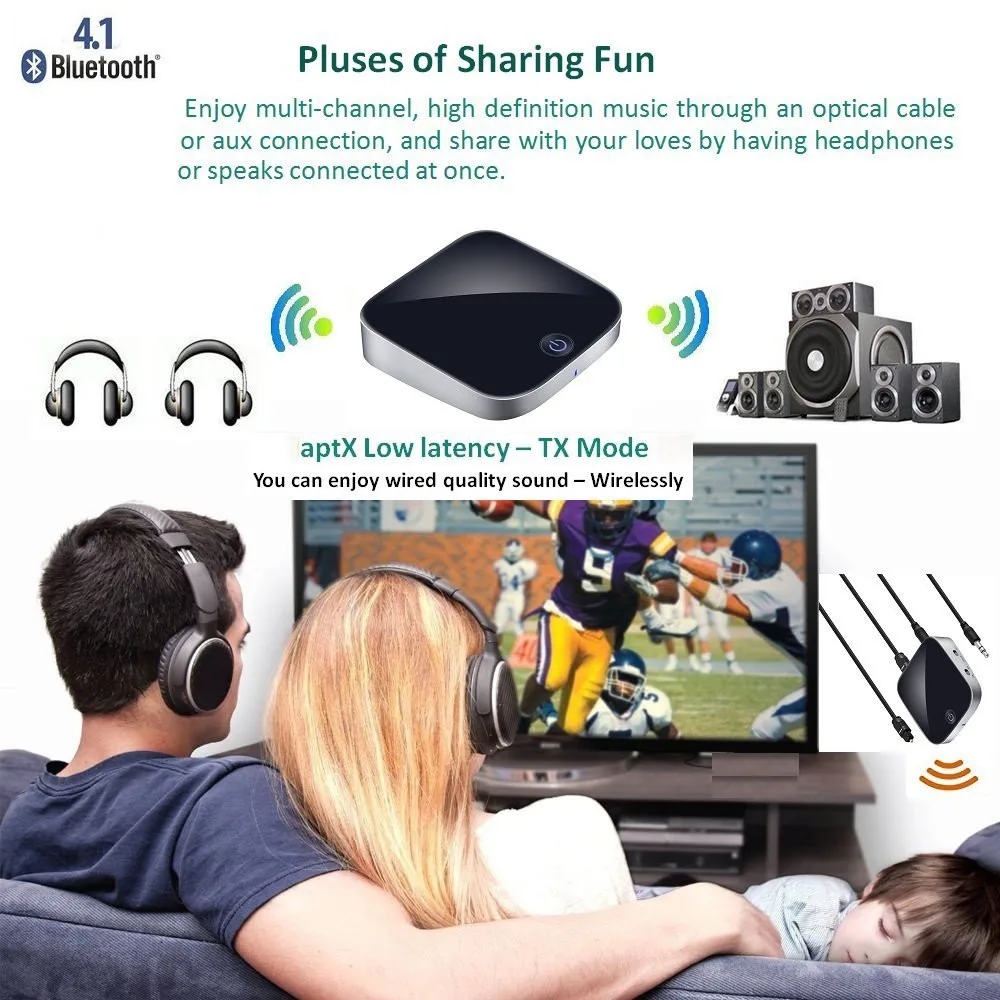 Bluetooth-передатчик позволяет вам веселиться в музыкальном мире. Он поставляет аналоговый аудиосигнал или отправляет цифровой ТВ аудио сигнал через режим Bluetooth на bluetooth-динамик, bluetooth-гарнитуру или bluetooth наушники.