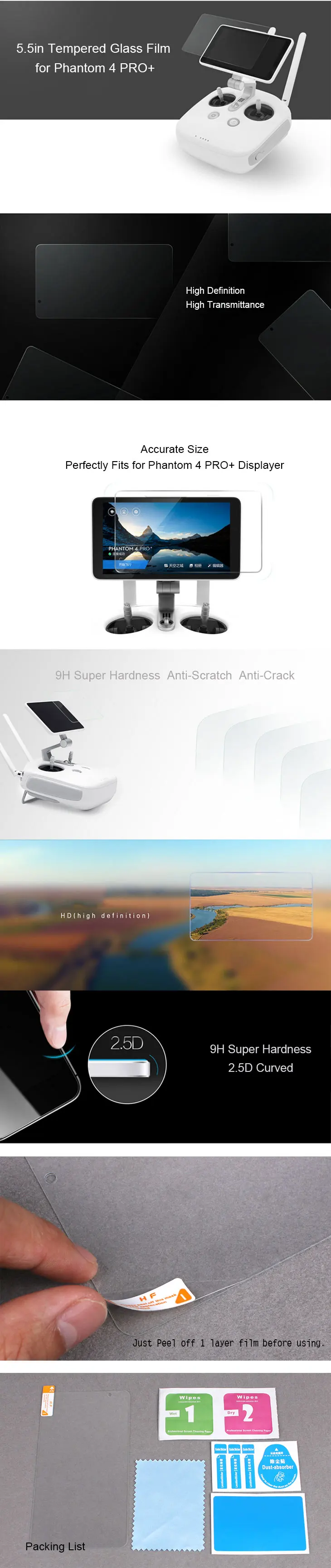 5.5in Закаленное стекло пленка для DJI Phantom 4 PRO + Сверхтвердость 9H 2.5D изогнутый Высокое разрешение С высоким коэффициентом пропускания С защитой от образования трещин Защита от царапин