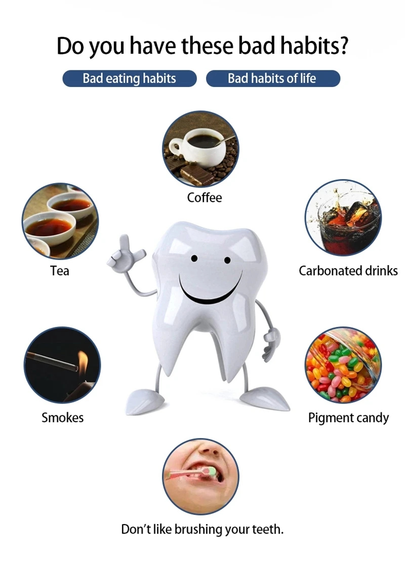 Применение шаги Шаг 1: сначала почистите зубы, держите рот чистым, естественным и чистым Шаг 2: Вымойте зуб и равномерно нанесите гель на инструмент для чистки зубов или зубов Шаг 3: Включите стоматологический инструмент, выберите режим, который вам подходит Затем положите его в рот и кусите Шаг 4: через 15 минут до 30 минут времени чистки зубов Выключите и выньте измеритель зуба, промойте водой, Вымойте изделие, положите в сухое место Меры предосторожности 1. Беременным женщинам или детям до 14 лет рекомендуется не использовать 2. Избегайте контакта геля с кожей, глазами или глотанием 3. Избегайте контакта геля с кожей, глазами или глотанием 4. Для пациента с стоматологическим или оральным недугом, пожалуйста, сначала обратитесь к врачу, а затем используйте этот продукт после лечения Примечания: 1. Из-за разницы между различными мониторами изображение может не отражать фактический цвет изделия. Мы гарантируем, что модель реального изделия не отличается от представленной на фото. 2. Возможны незначительные различия в размерах в связи с различными ручными измерениями.