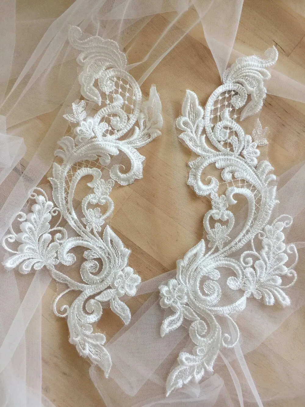 Стиль А-это молочные волокна, каждый размер составляет 14x30 см Стиль B-это Кружевная аппликация из чистого хлопка с вышивкой в белом цвете, каждый размер 15x37 см Стильная C Прозрачная Кружевная аппликация с блестками в белом цвете, каждый размер около 8x30 см