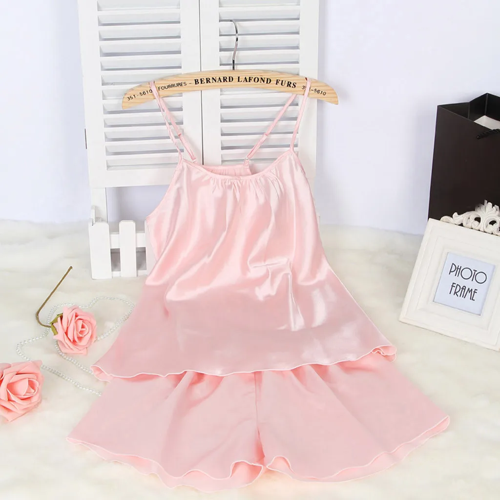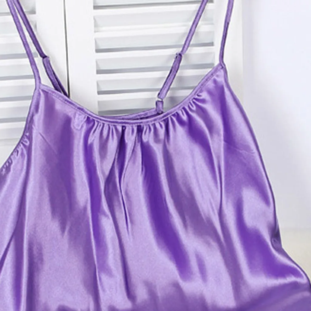 Женское сексуальное атласное модное однотонное ночное белье на бретельках, комплект женского белья