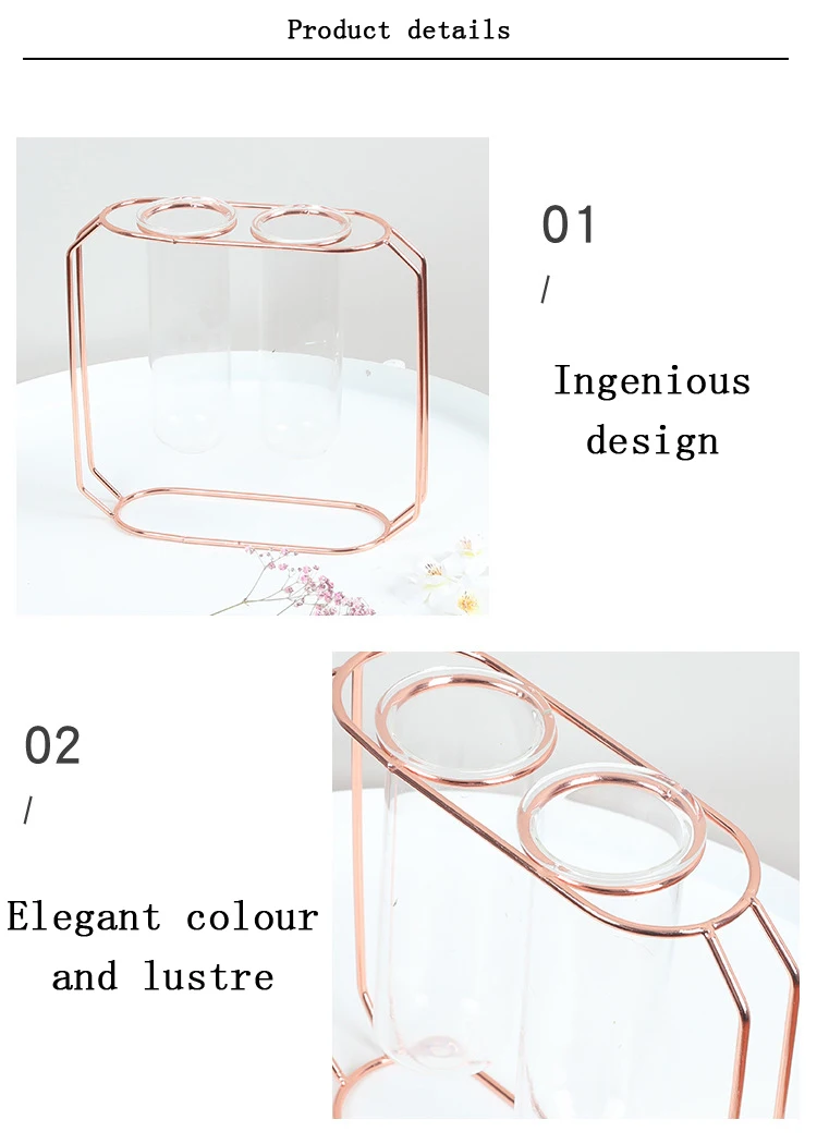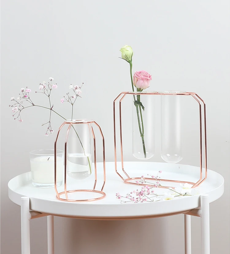 Прозрачная стеклянная железная ваза в скандинавском стиле, ваза из розового золота в форме цеометрического цветка, украшение для дома и свадьбы