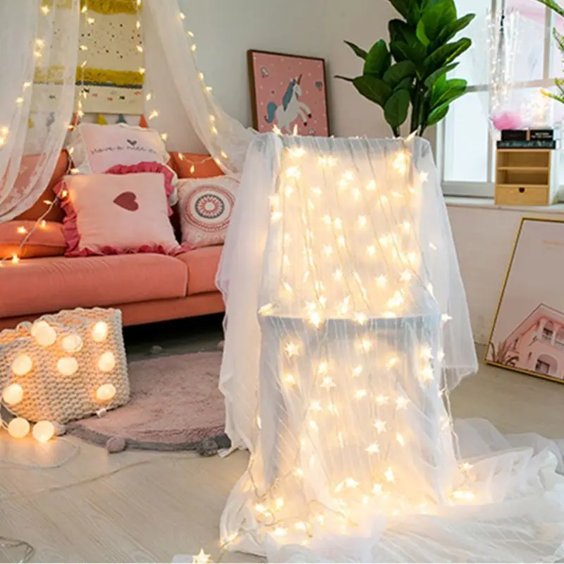 Светодиодный Теплый Белый Струнный светильник Twinkle Star с батареей для помещений, для улицы, сказочные струнные светильники для детской комнаты, спальни, настенный тент, Свадебные Вечерние огни на день рождения