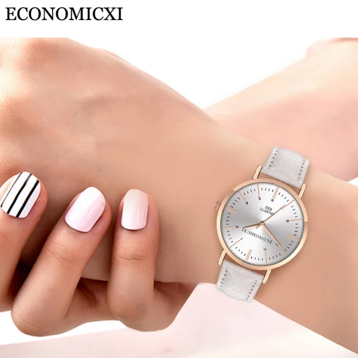 Модные новые женские повседневные аналоговые кварцевые часы с круглым циферблатом с ремешком из искусственной кожи reloj mujer женские часы relogio