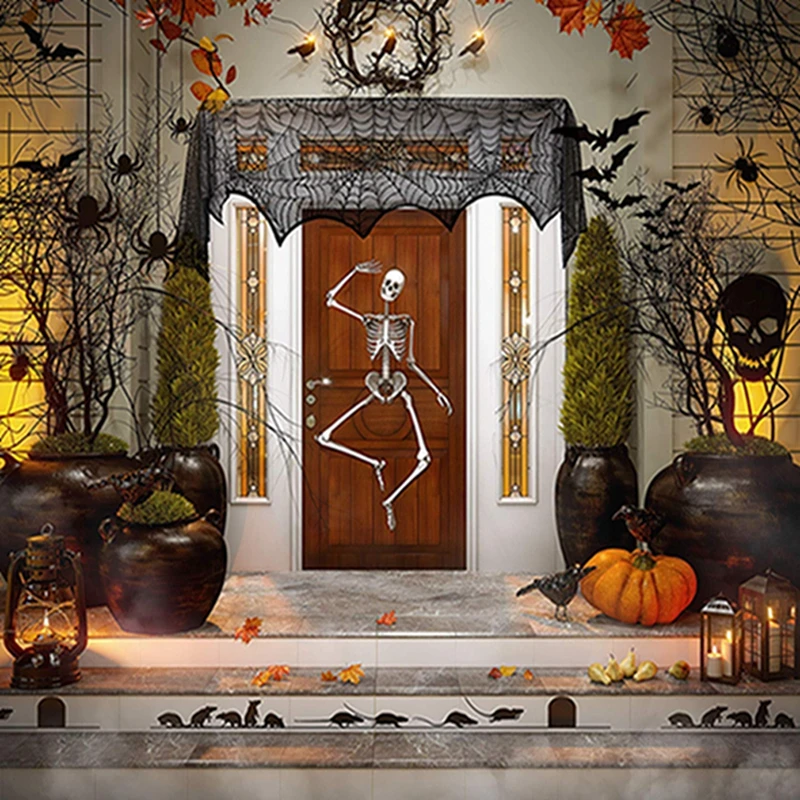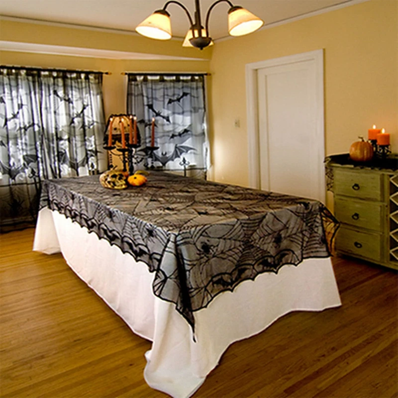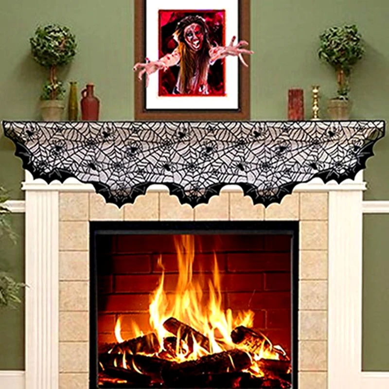 Хэллоуин Декор реквизит Черная кружевная занавеска с паутиной скатерть камин летучие мыши мантия шарф