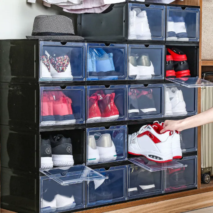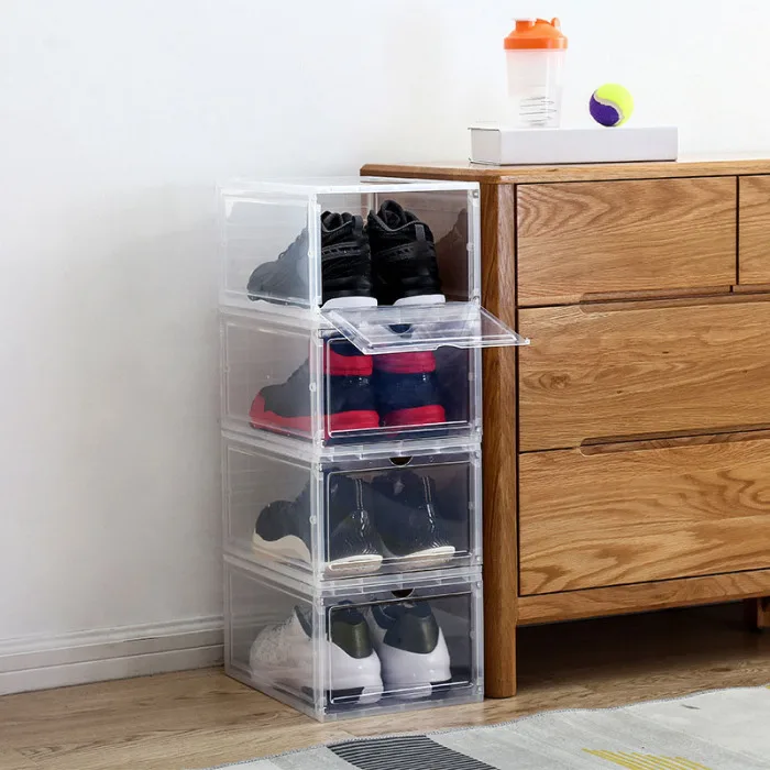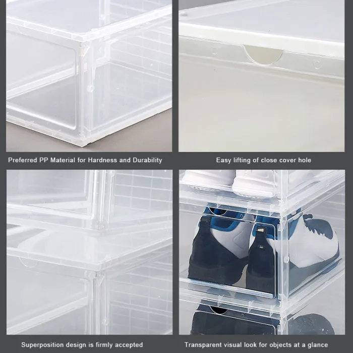 Ясно видеть:Эти коробки для обуви изготовлены из полипропиленового пластика. Вы можете выбрать свою любимую обувь, когда выходите.