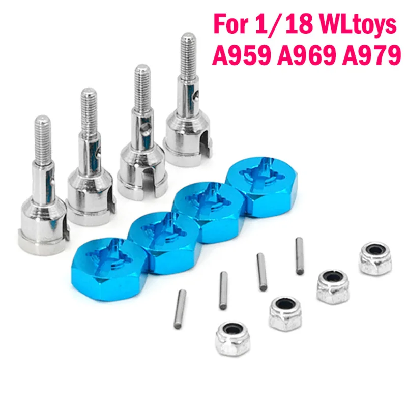 Wheel Conversion Set Axle & 12Mm Hex Dive Hub Turn 1/10 on Road for WLtoys 1/18 A959 A969 A979 A959B A969-B RC Car Upgrade Parts