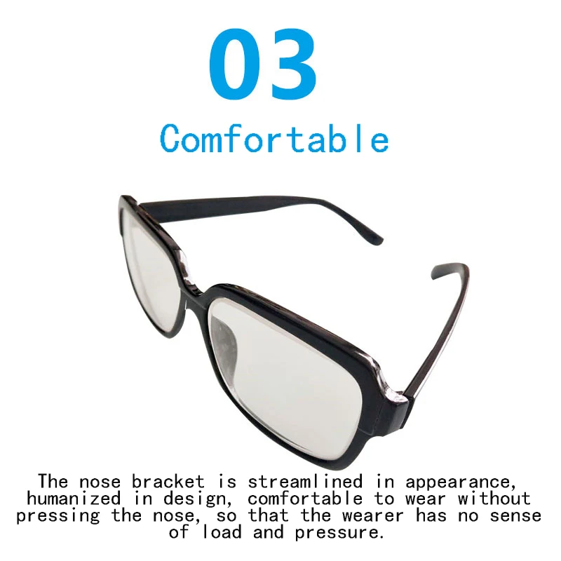 4. Разумный дизайн очки с боковая граница (заушники), высокая светильник с высоким коэффициентом пропускания, ударопрочное обзорное стекло, прочный и долговечный.