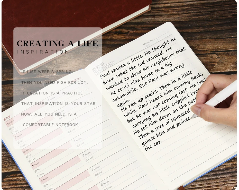 Мягкая кожа + слизистая вязка и традиционная вязка нитей 80 г бездревесная бумага, гладкое письмо, защита зрения