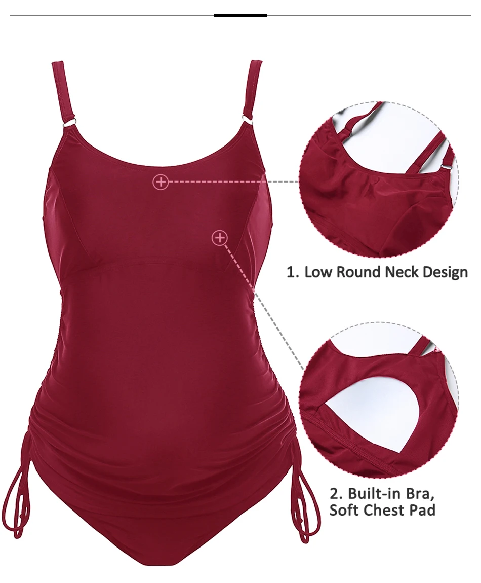 Фиксированная грудная подкладка, немного эластичная, для ношения во время беременности, купальник танкини для беременных адаптируется к переменам тела мам.