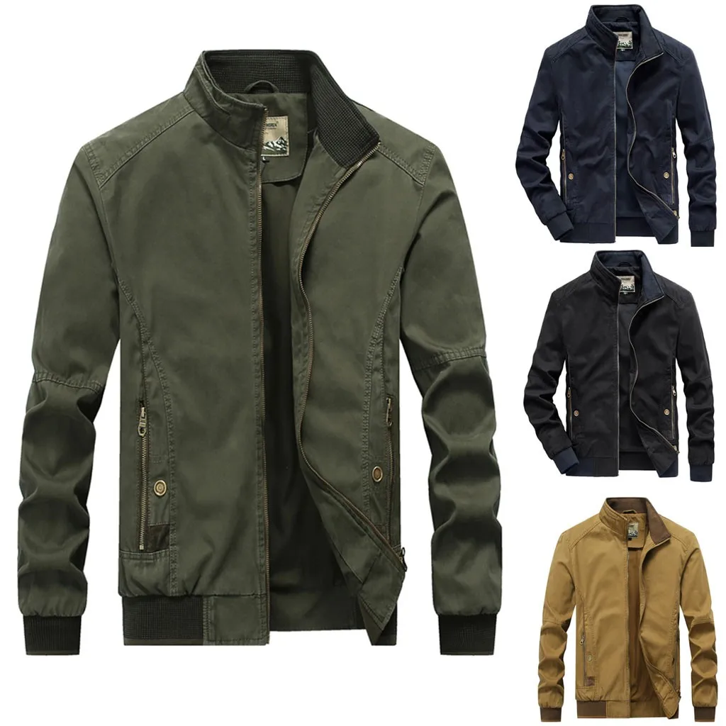 Мужская осенне-зимняя Военная верхняя одежда на молнии, однотонное дышащее пальто