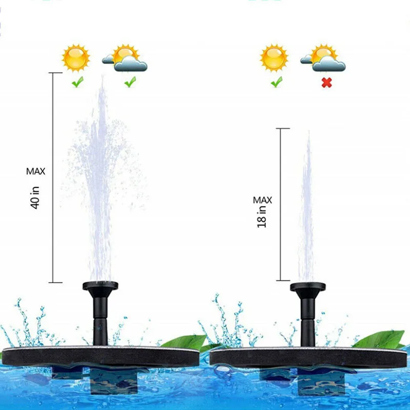 4) Этот продукт является солнечным водным насосом прямого привода. Нет внешнего аккумулятора. Высота распыления воды полностью зависит от силы Солнца.