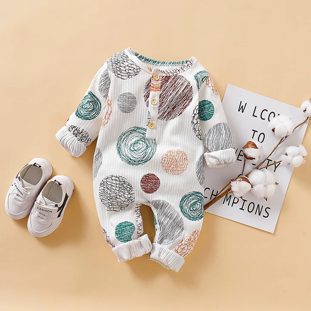 Комбинезон в горошек с длинными рукавами для маленьких мальчиков и девочек; комбинезон; одежда