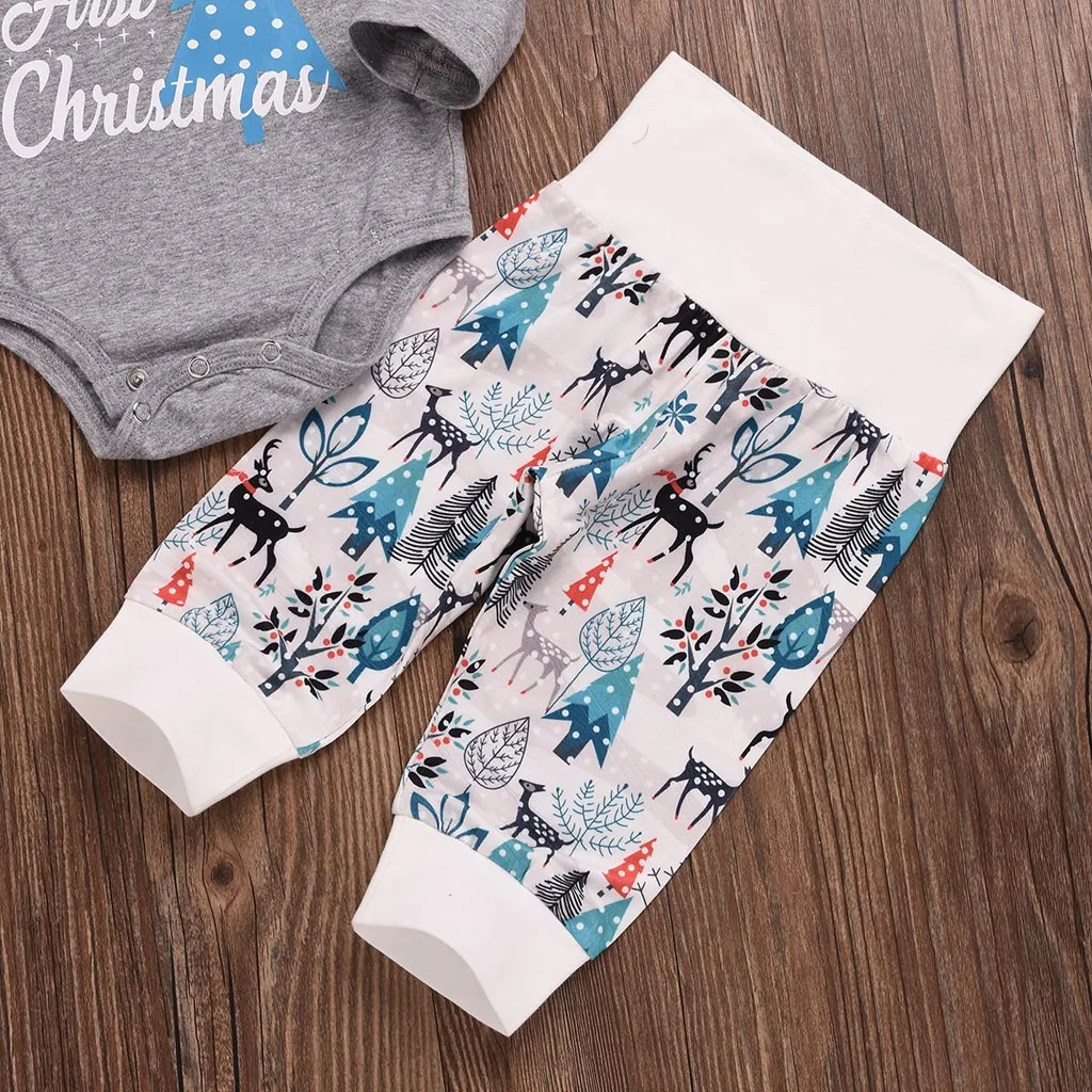 Рождественский комбинезон для новорожденных, боди + штаны + шапка + повязка на голову