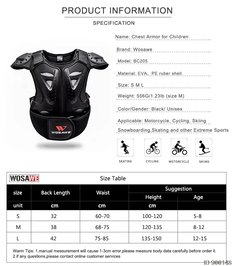 Эта бронированная куртка/жилет изготовлена из PE оболочки с пеной EVA с высокой ударопрочностью, является идеальным защитником для езды на мотоцикле, велоспорта, скейтбординга, катания на лыжах, всех видов спорта