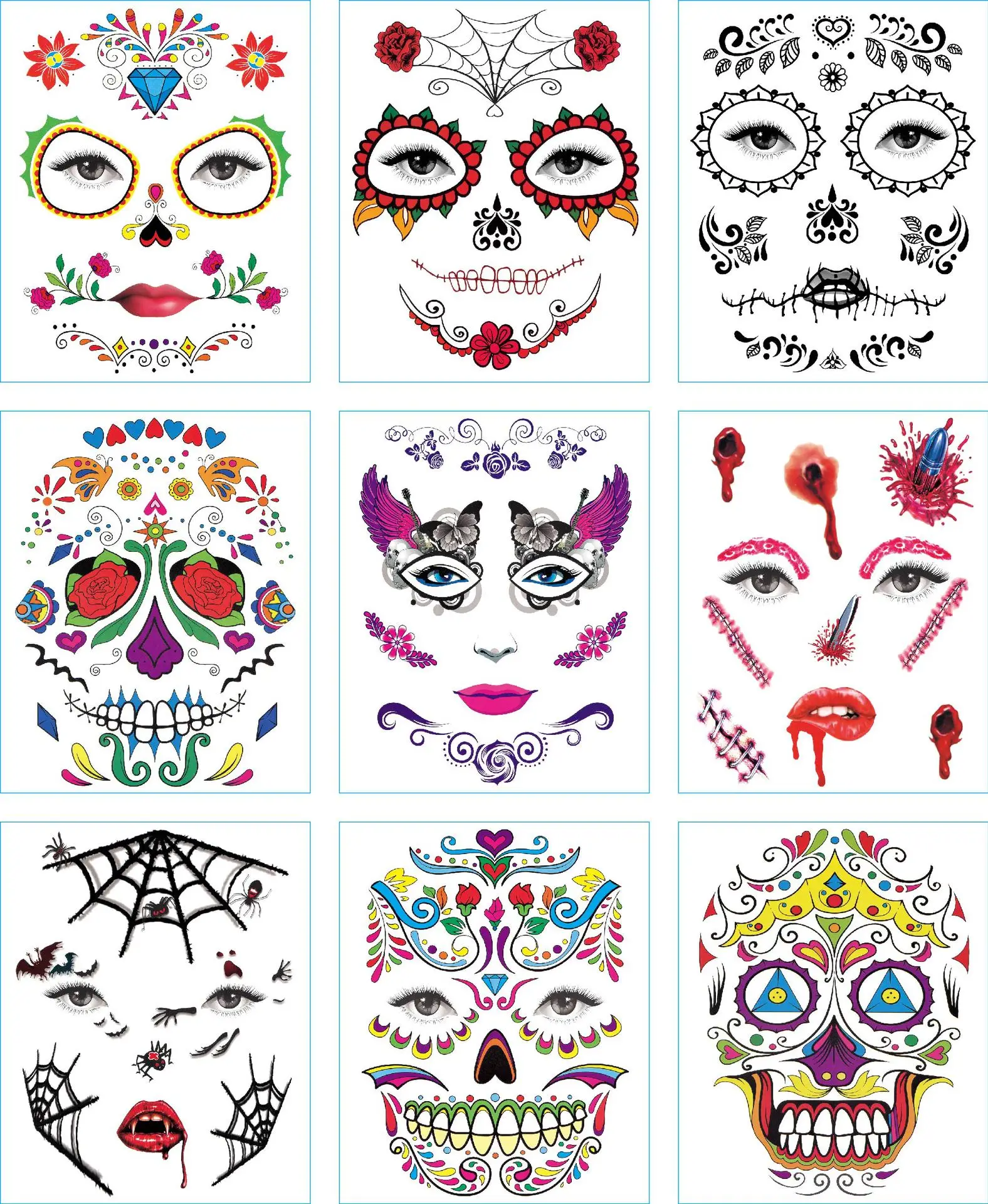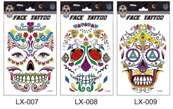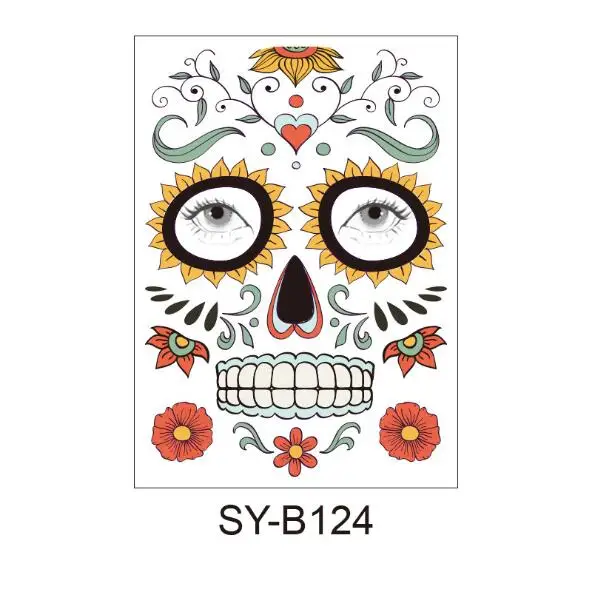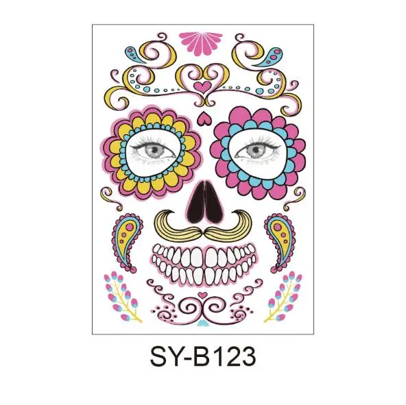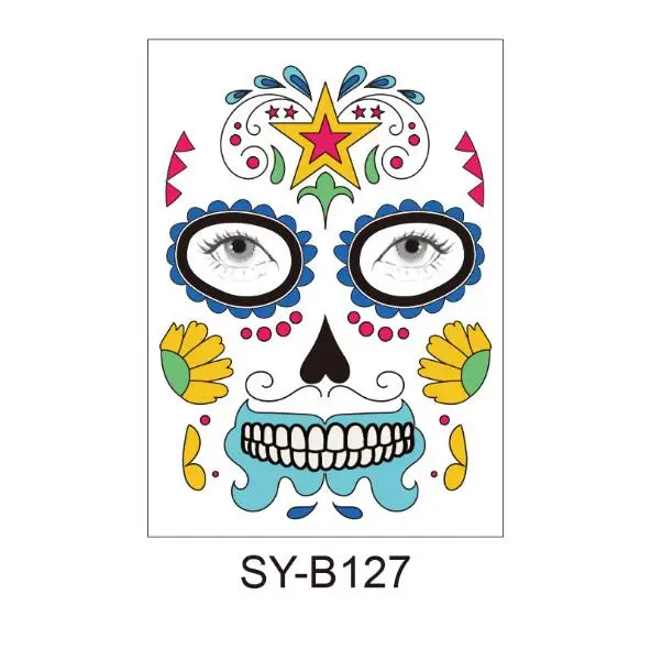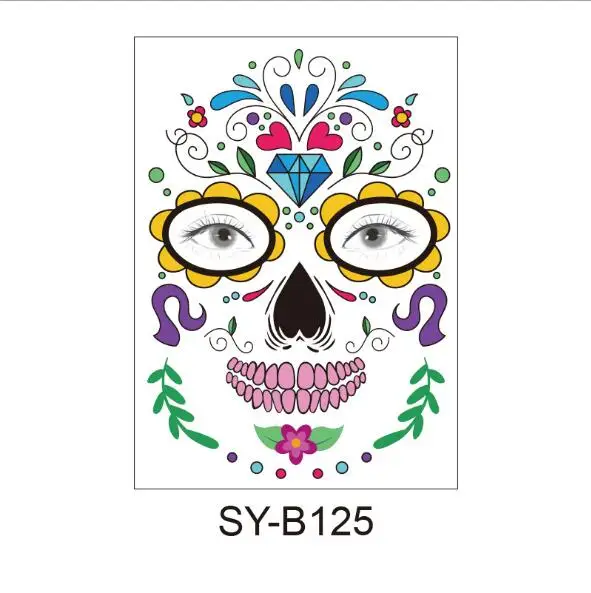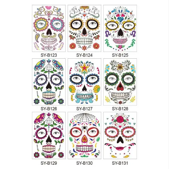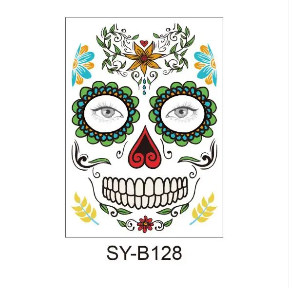 Череп лицо Костюм для хеллоуина Макияж лица Татуировки могут быть разрезаны, чтобы соответствовать различным размерам лица и форм Длительный срок и легко снимается Цвет: как на фотографии Материал: Ремесло Бумага Размер: 15 см x 12,5 см (прибл.) Комплектация: 1 шт. Обратите внимание: 1. Возможны отклонения в 1-3 мм из-за ручного измерения. Перед размещением заказа, пожалуйста, внимательно ознакомитесь со всеми условиями. 2. Цвета могут отличаться от цвета дисплея, пожалуйста, поймите