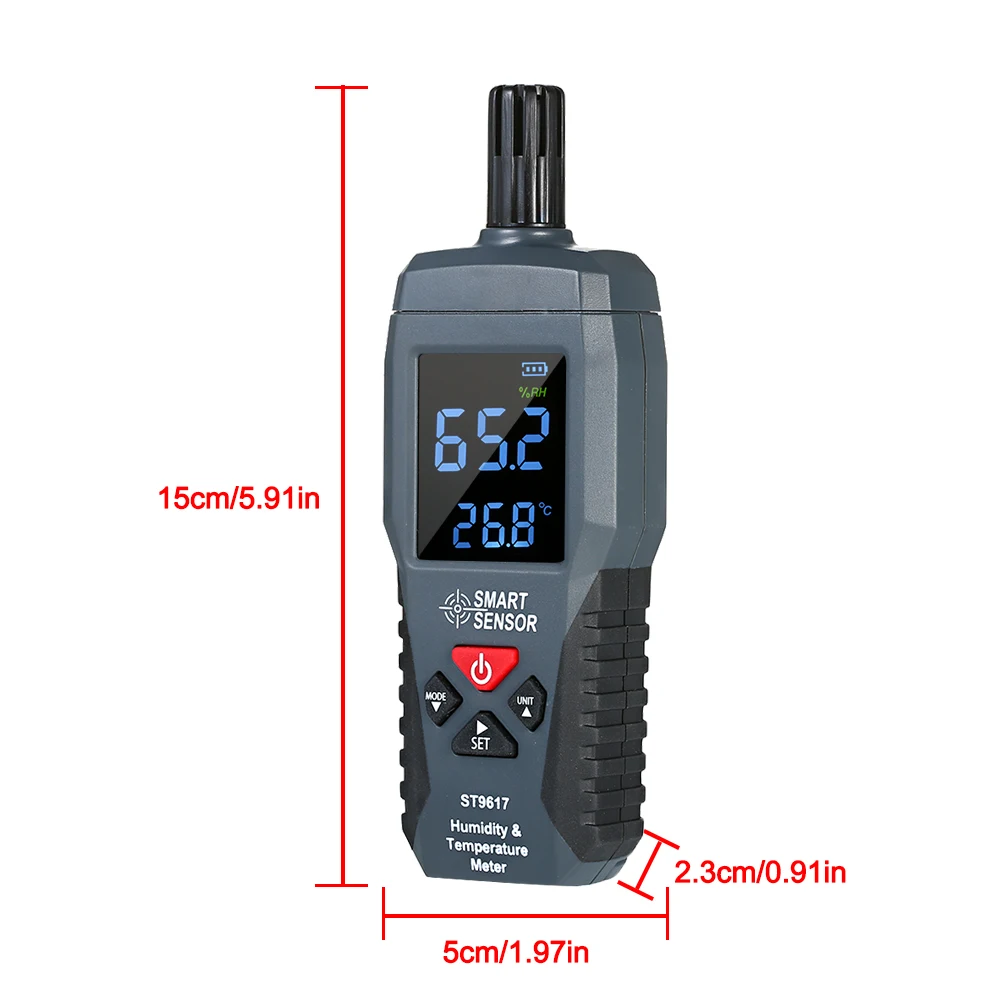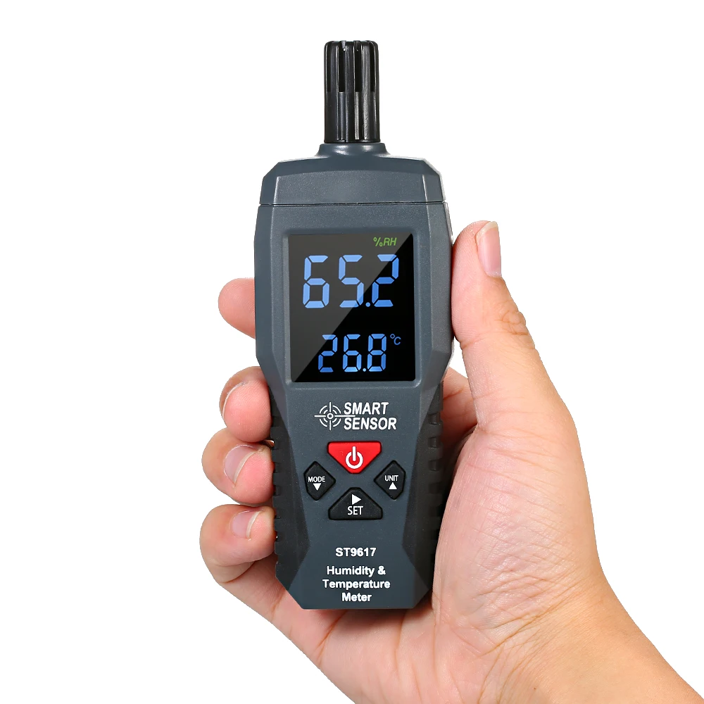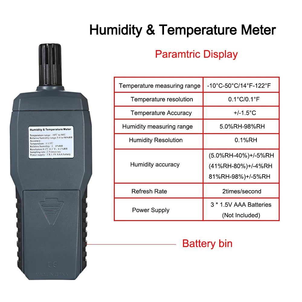 Этот профессиональный измеритель может измерять температуру и влажность с надежными результатами измерений. Двойной дисплей температуры и влажности, легко менять между ℃ и ℃. Подходит для использования в лабораториях, складах, ресторанах, теплицах, кондиционированных помещениях и т. д.