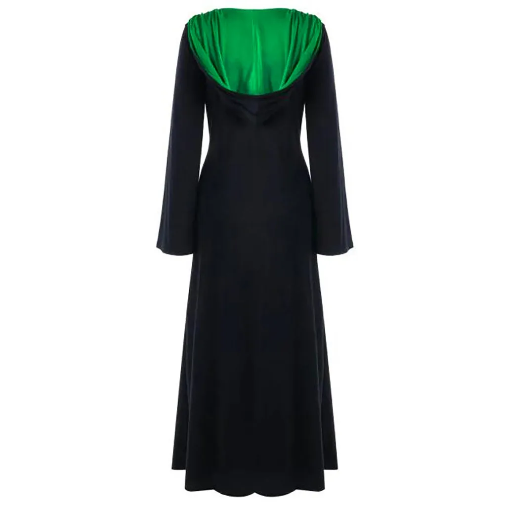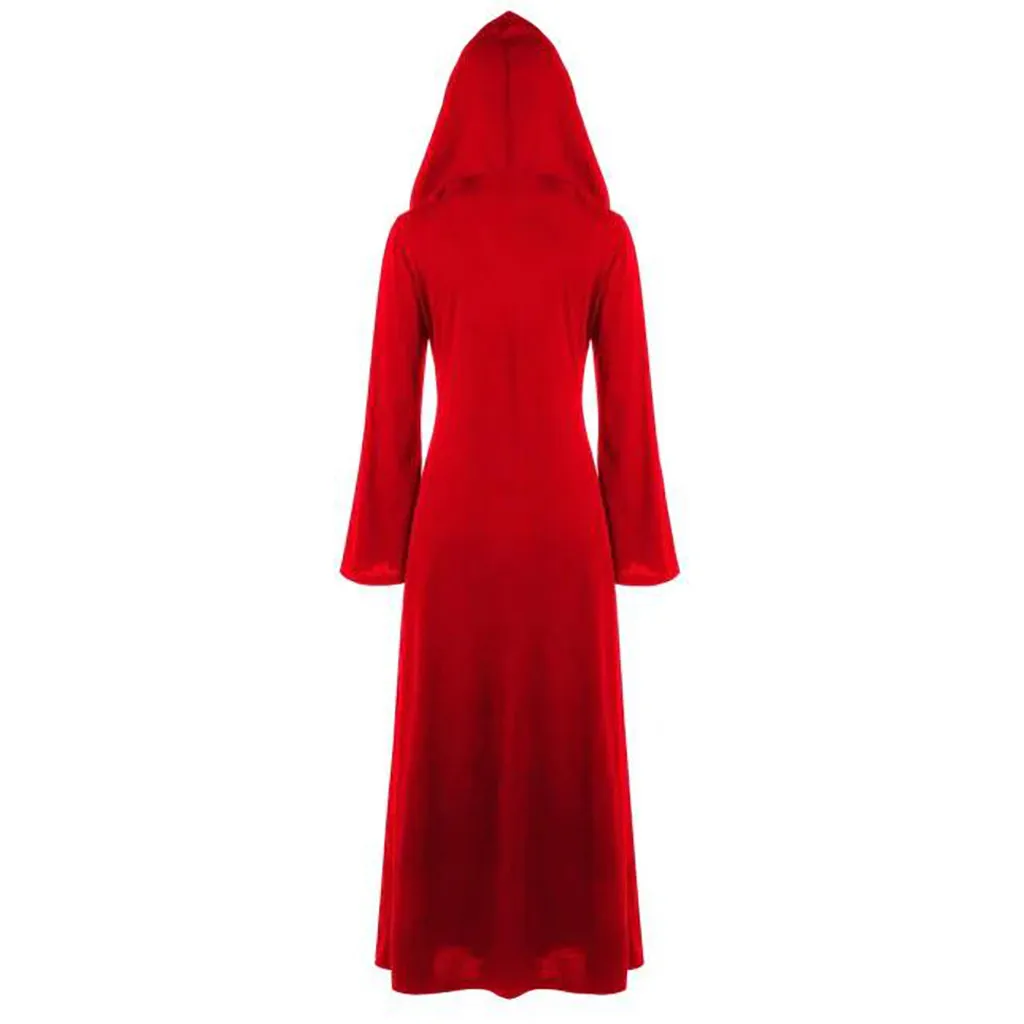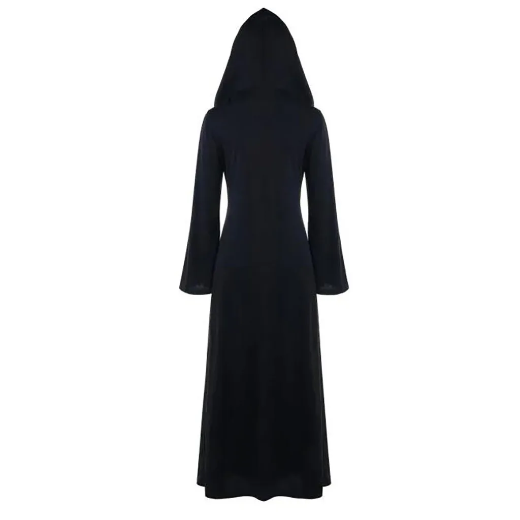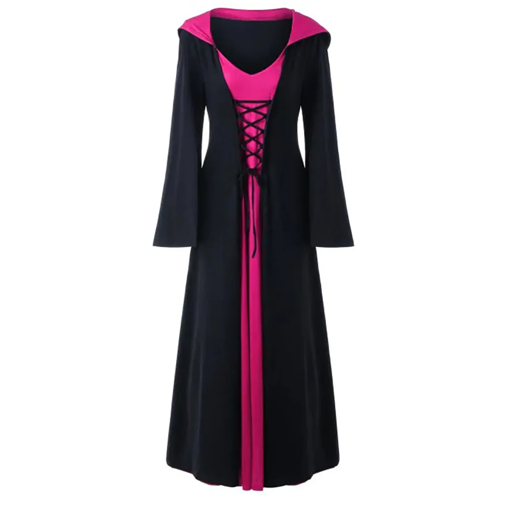 Женское платье-макси с капюшоном на Хэллоуин размера плюс, на шнуровке, в стиле пэчворк, с длинным рукавом