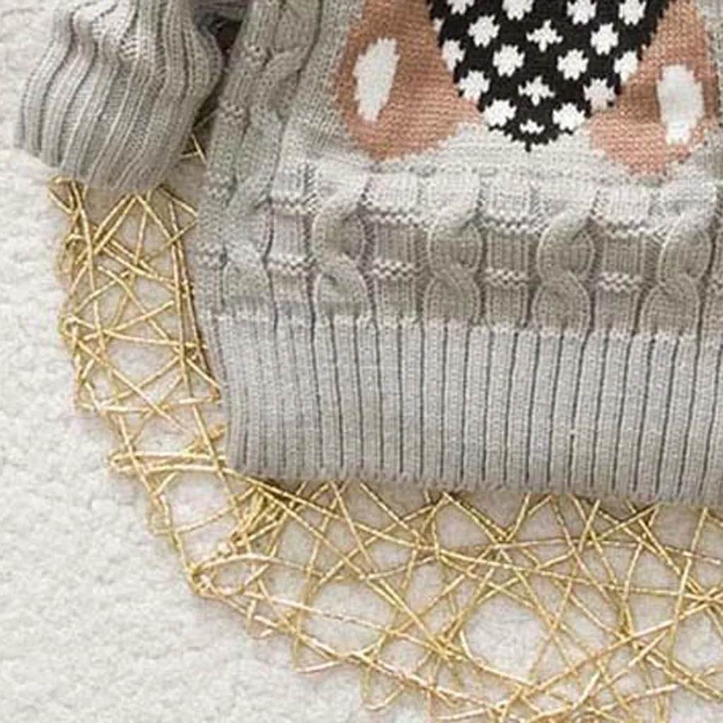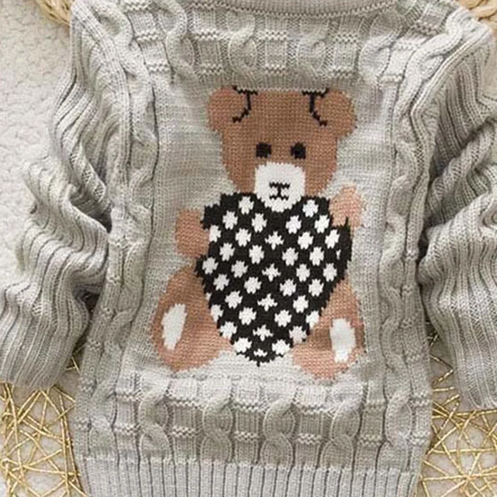 Малыша Одежда для детей; малышей; девочек с принтом медведя для маленьких мальчиков, вязаный свитер; вязаная верхняя одежда, наряд