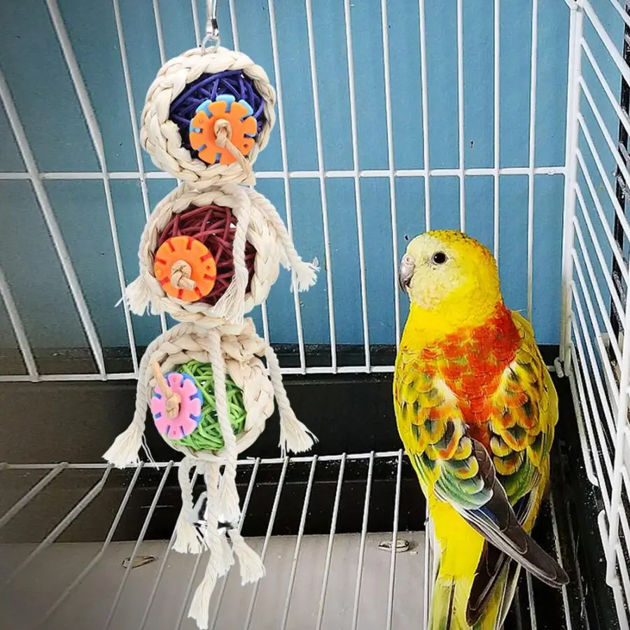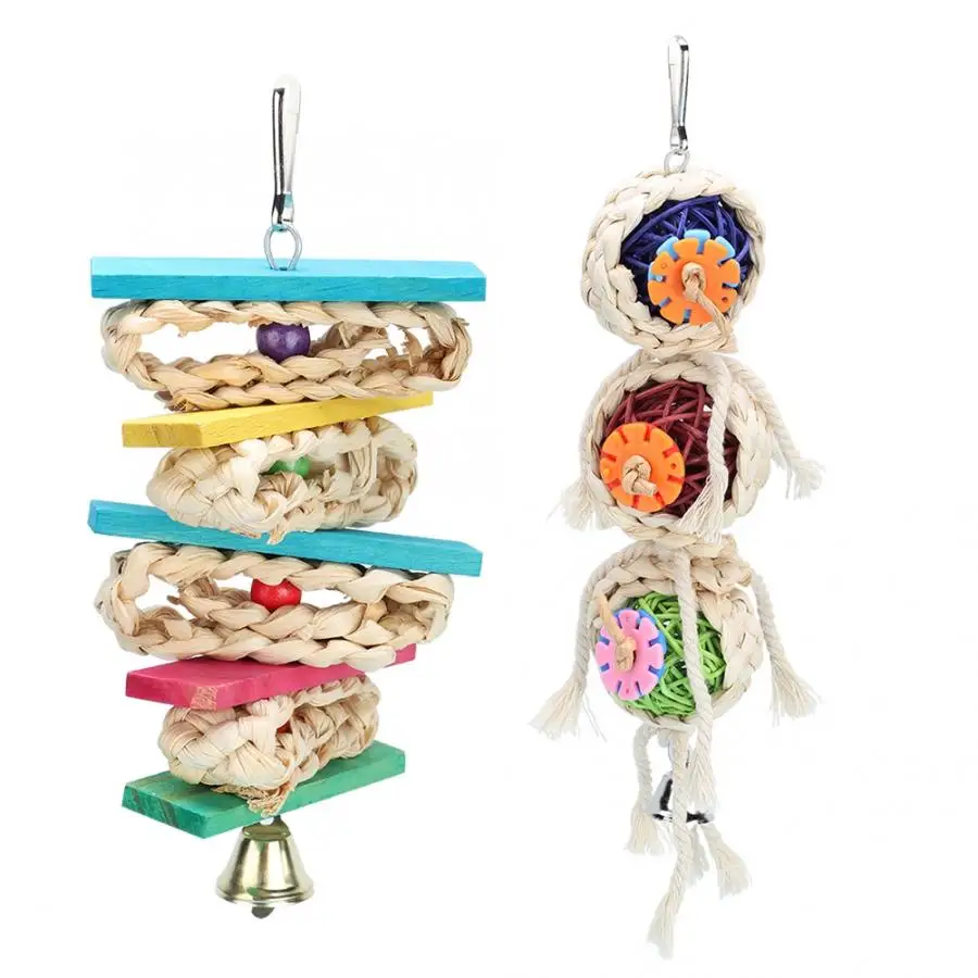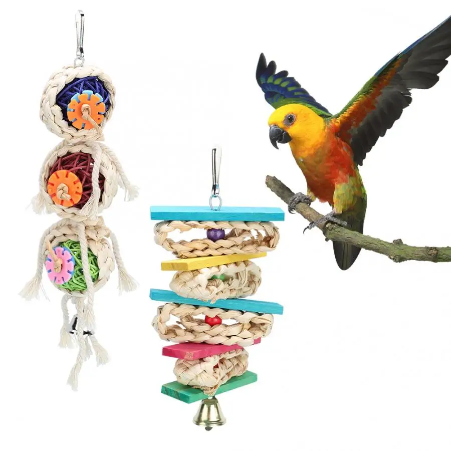 Птица игрушка 2 шт птица качели соломы Sepak takraw жевательная игрушка подвесные игрушки для клетки для попугаев cockatils соломенная игрушка