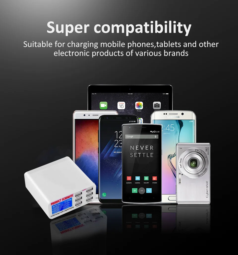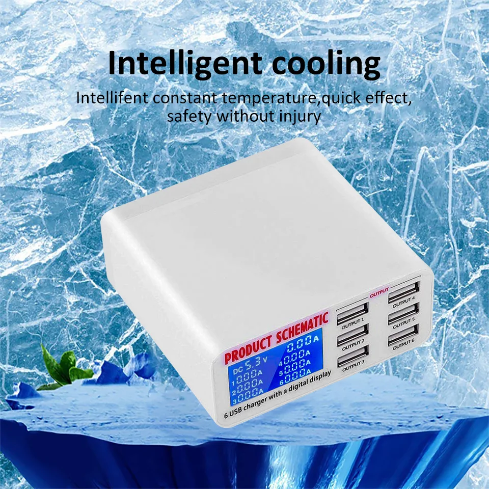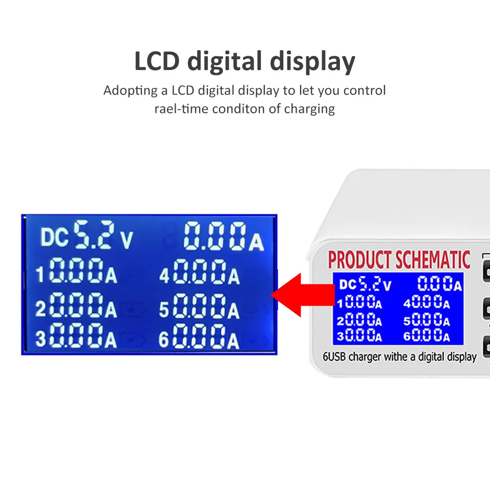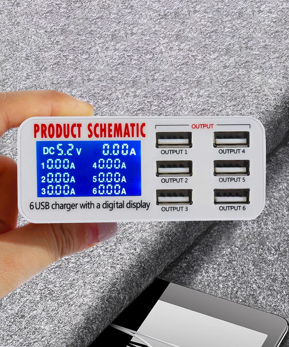 Зарядное устройство с 6 портами USB, интеллектуальная зарядка, многопортовое зарядное устройство для путешествий, ЖК-дисплей, цифровая станция с несколькими портами, usb-разъем для зарядки US