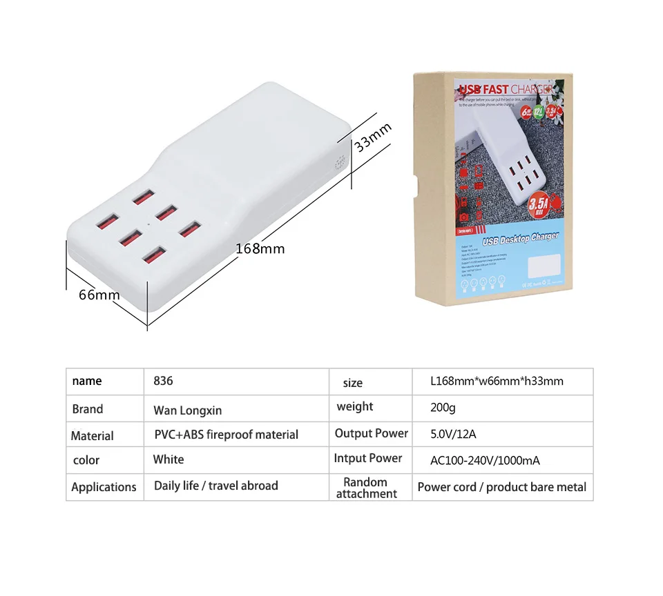 Описание: Этот 6-портовое USB Зарядное устройство поддерживает несколько устройств, чтобы заряжать одновременно с его совместимость с большим количеством устройств. Вы можете играть в игры во время зарядки, не нужно беспокоиться о недостаточных вилках из-за слишком большого количества устройств. Интеллектуальная идентификация делает зарядку быстрой и безопасной. Подходит для дома и офиса. Характеристики: [6 портов с сильной мощностью] с 6 портами, умное зарядное устройство предоставляет вам достаточно портов для зарядки ваших устройств, вы можете удобно заряжать ваш мобильный телефон, iPad и другие устройства одновременно. [Универсальная совместимость] вы можете не только зарядить свой телефон, но и заряжать планшет, камеру и другие устройства. Кроме того, он также поддерживает глобальное использование. [Безопасное использование] с интеллектуальными технологиями адаптер питания имеет четыре преимущества, которые обеспечивают безопасную зарядку, в том числе защиту от перезаряда, защита от перенапряжения, защита от тепла и защита от короткого замыкания. [Противоскользящая основа] есть четыре силиконовых подкладки, которые позволят избежать скольжения с плоской поверхности. Чтобы зарядная док-станция была устойчивой. [Автоматическое определение валюты] Зарядное устройство USB может автоматически обнаруживать устройства и заряжать их с возможным быстрым способом. Эффективно работает, чтобы сэкономить ваше время. Спецификация: Название: зарядное устройство USB Tatol выход: 12A Модель: WLX-836 Вход: 100 В-240 В переменного тока USB порт Выход: стандартный 5 В/2 А размер изделия: 15,8*6,3*3,2 см/6,22*2,48 * 1.26in(L * W * H) Вес товара: Approx.209g/7,37 oz посылка Размер: 18,8*11,5*4,9 см/7,4*4,53 * 1.93in(L * W * H) посылка Вес: 312 г/11,01 oz посылка список: 1 * USB Зарядное устройство 1 * Мощность адаптер
