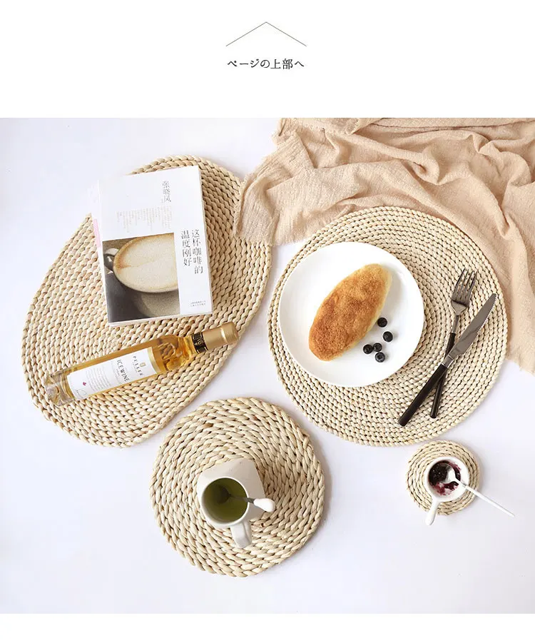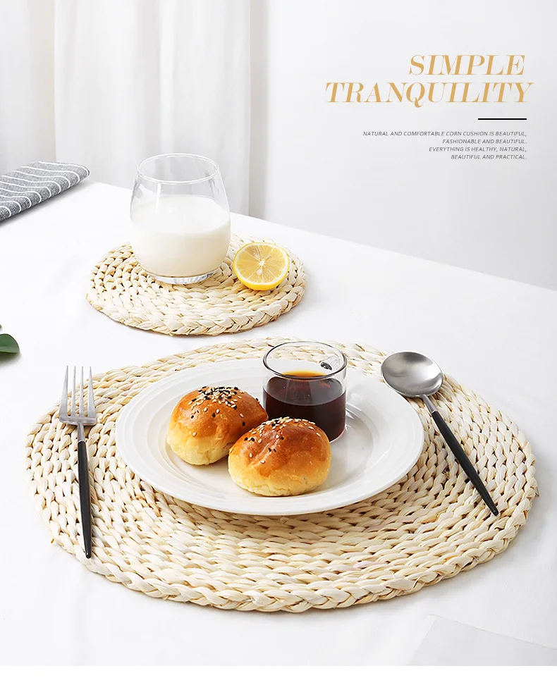 Corn Skin Woven Mat Dining Table Thermal Insulation Pot Holder Coasters Round Coffee Tea Drink Cup Mug Coaster Table Placemats Kitchen Also Features: 100% Brand new and high quality. Elegant and beautiful design, Perfect For Home Kitchen Decoration. Unique pattern decreases weight & evenly distributes heat to better protect hands Insulation performance, suitable for kitchen table mats, mat bowls, dish mats, pot holders, coasters, table mats, etc. Perfect for everyday use and great decoration for your home. Specification: Material: Corn Fabric Pattern: Round, Oval Size: Round diameter: 11 cm / 22 cm / 36 cm / 45 cm( Oval ) Oval Size: 30 * 45 cm Function: Table decoration, insulaiton, suitable for tablecloth, tea table, cup. The package includes: 1 x Placemat Table