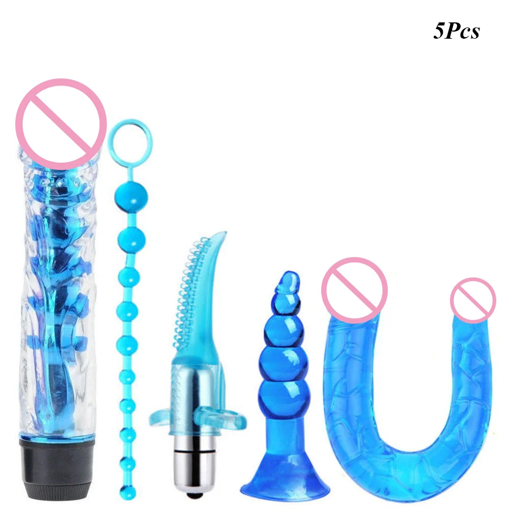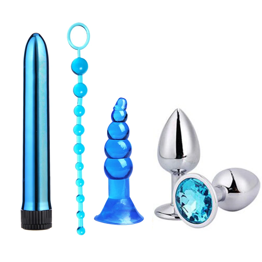 1 * синий Вибратор (2 * Батарея AAA); 1 * синяя Анальная бусина; 1 * силиконовая Анальная пробка; 2 * Металлические анальные пробки (нижний цвет случайный).