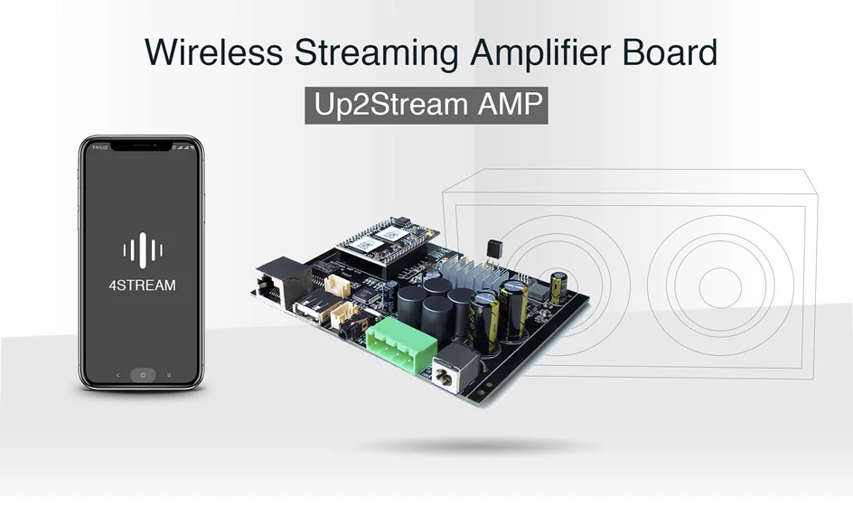 Up2Stream WiFi и Bluetooth усилитель платы 2,0 разработан с чипсетом передачи WiFi и BT высшего класса и полностью цифровым усилителем класса d ic STA326 от ST. Он может питаться от любого напряжения постоянного тока от 12 В до 24 В. Эта плата усилителя способна выводить до 50 Вт на канал. Он может управлять 4 Ом или 8 Ом.