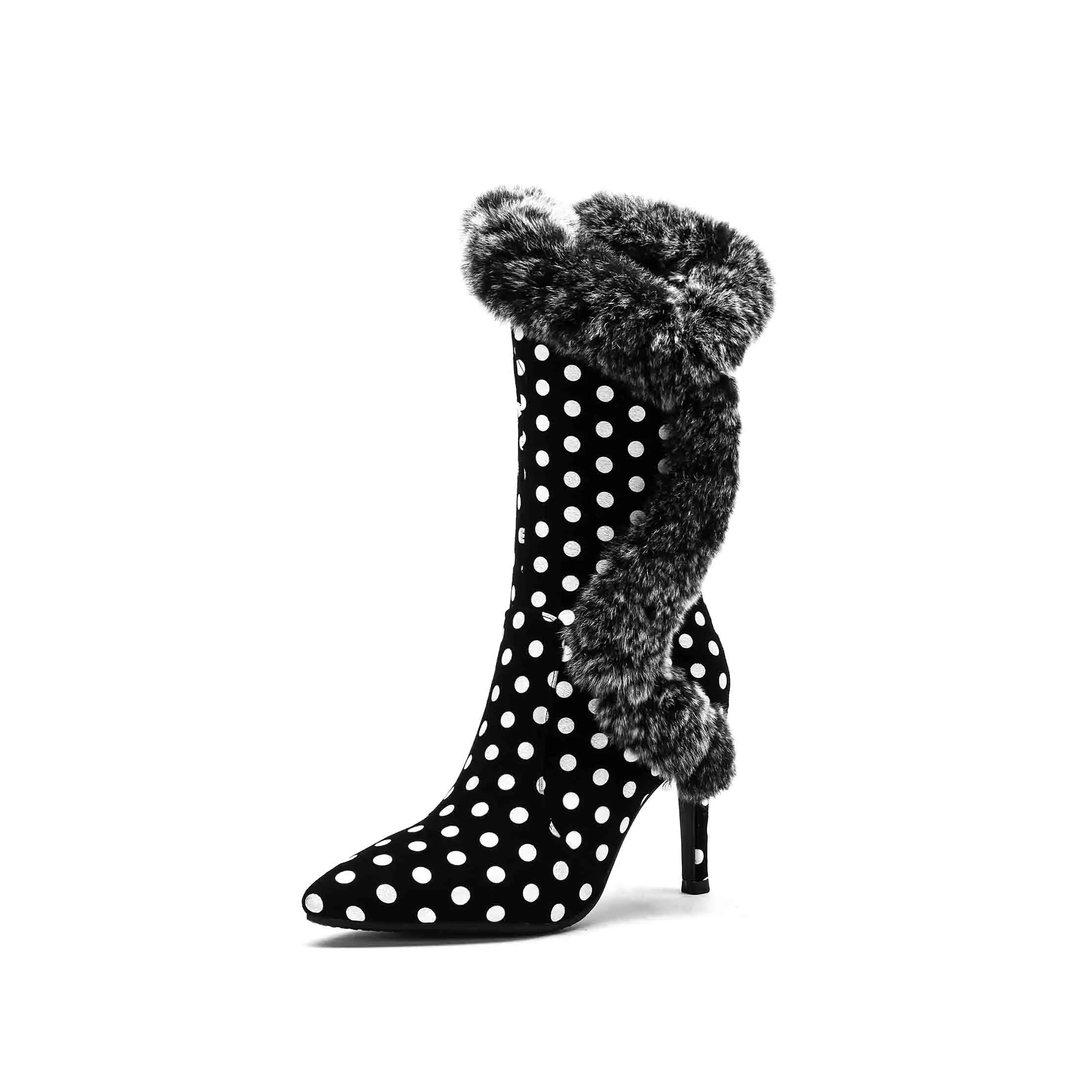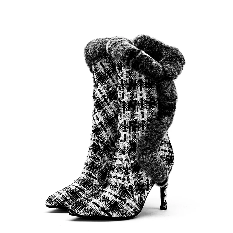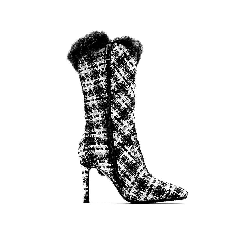 Оригинальные Популярные черные ботильоны; Женская обувь в белую полоску с искусственным мехом; Женские зимние ботинки; Теплые ботинки с острым носком. Пожалуйста, используйте нашу таблицу размеров при выборе размера.