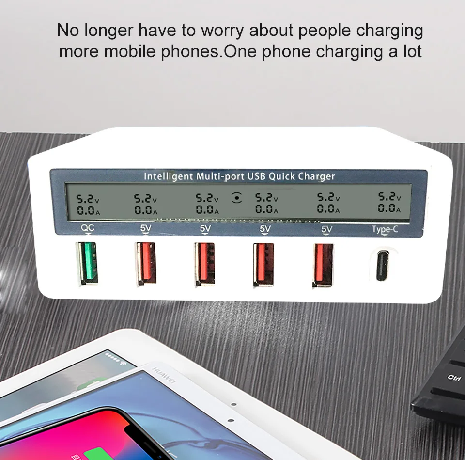 6 портов s Быстрая зарядка USB станция светодиодный дисплей Быстрая зарядка настольный адаптер питания с портом типа C