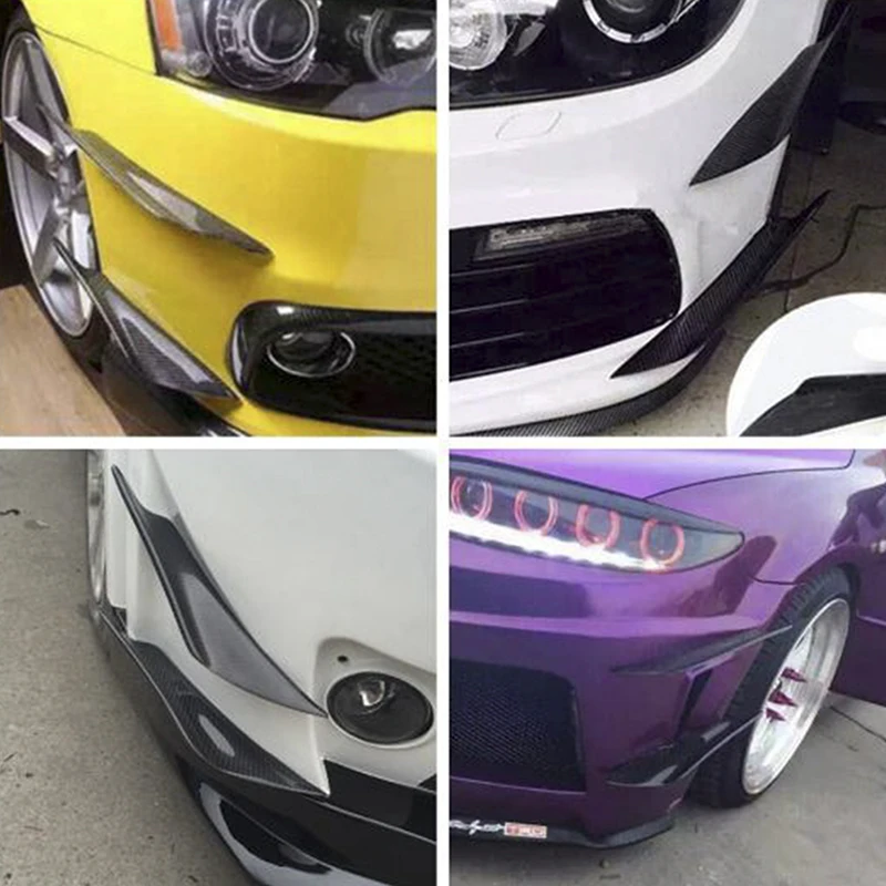 Материал: АБС-пластик Основной цвет: черный Установка: для большинства автомобилей, грузовиков, внедорожников Размер: как показано на картинке. Полный набор 4 шт тела бокового крыла спойлер/губы, чтобы добавить на бампер canards для агрессивного спортивного вида. Придает спортивный вид, а также защищает передний Боковой бампер от царапин или небольших повреждений. Изготовлено из настоящего углеродного волокна. 100% из водонепроницаемого материала. Никогда не выцветает, никогда не ржавеет. Простота установки. Прилагаются клейкие ленты и винты.