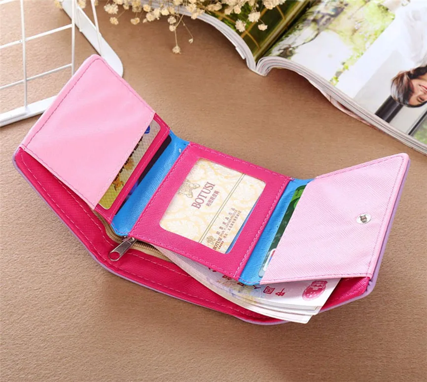 Женский кошелек с несколькими отделениями для карт из матовой ткани с мультяшными животными, женский короткий яркий кошелек для монет, кошелек для карт, клатч, кошельки