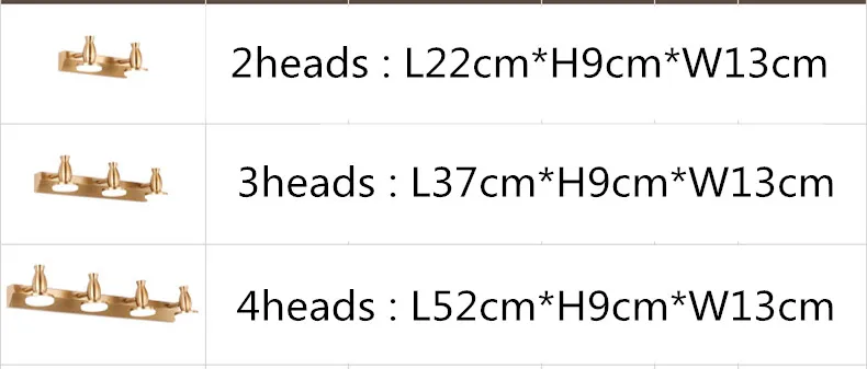Материал: металл + акрил Размер: 1 головка w16см, 2 головки w22см, 3 головки w37см, 4 головки w52см Светильник Источник: SMD Посылка: 1 шт.
