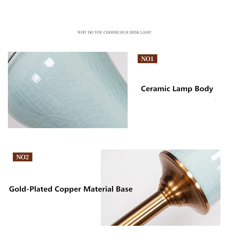 Стиль: Современный американский стиль Подходящие случаи: гостиная, спальня, кабинет, фойе Материал лампы: китайский дзиндэжэнь керамика Абажурный Материал: высококачественная ткань Основной материал: Имитация меди Спецификация держателя лампы: E27 Тип источника света: светодиодный/накаливания Цвет света: теплый свет Количество источников света: 1 Гарантия: 3 года Напряжение: 220 v Тип переключателя: кнопка Размер: 155 см в высоту/38 см в диаметре Цвет: синий В комплект входит: Содержит 2 коробки! Коробка 1 Размер: 68*37*37 см, 8 кг для корпуса лампы Размер коробки 2: 41*41*30 см, 3 кг для абажура