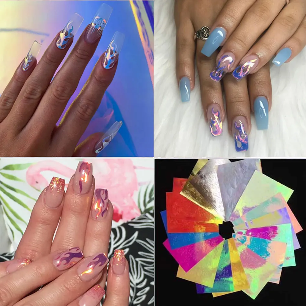 16 шт голографические огненные наклейки для ногтей