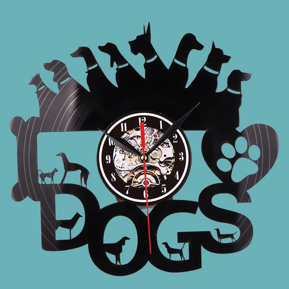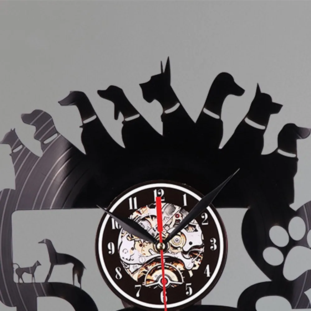 2019 разная форма в виде собаки полые виниловые часы подарок для любителей собак светодиодный настенные часы Черный Античный стиль подвесные часы