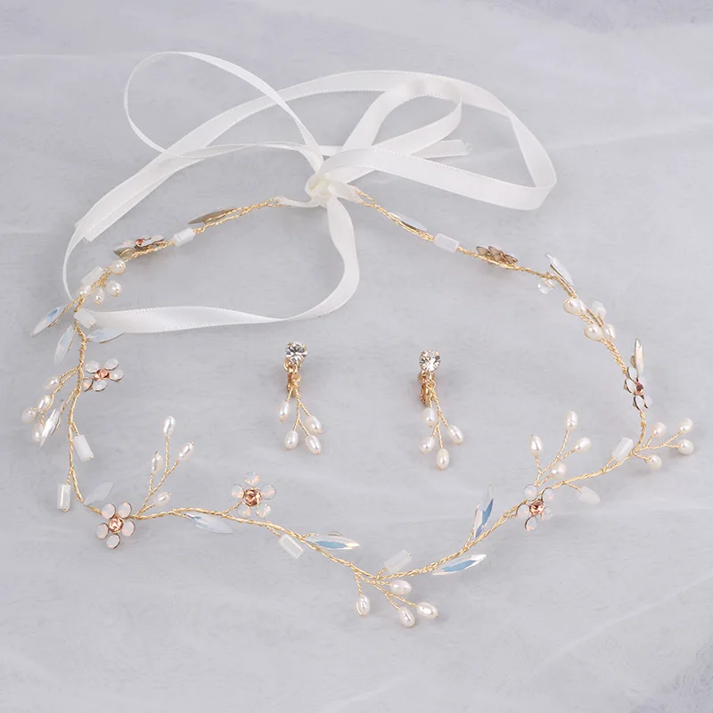 GibsonBridal-профессиональный свадебный аксессуар ручной работы, свадебная тиара, головная повязка, гребень для волос, свадебный пояс, свадебная фата и т. д. Свадебные хрустальные ободки, пресноводные жемчужины, опал, лоза для волос и серьги, набор для невесты, подружки невесты, головной убор для девочек, ювелирные изделия для выпускного вечера Материал: пресноводный жемчуг, стразы, опал, бусины-трубки Цвет: золото Наши аксессуары для волос ручной работы идеально подходят как для классической, так и для романтической свадьбы, подружки невесты или для особых случаев.