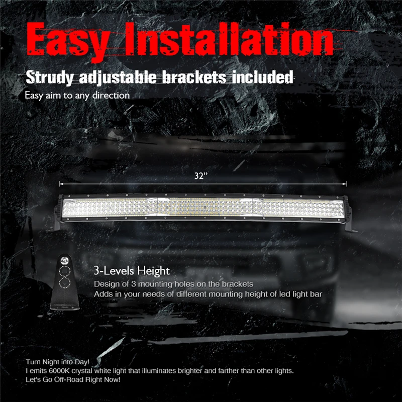 Параметры: Тип: пятирядная изогнутая планка Серия: glowstar Длина: 32 дюйма Светодиодный Кол-во: 402 шт. Световой поток: 20,000LM Цветовая температура: 6000K Водонепроницаемый Рейтинг: IP67 Рисунок луча: Комбинация точечного потока Материал: алюминиевый сплав + ПММА Блестящий яркий! -5 рядов высокоинтенсивных светодиодов, GlowStar выдает 20000 люмен 6000K кристаллический белый светильник с минимальным впустую светильник, предлагая вам супер четкую видимость. Изогнутый дизайн-идеальный светильник! Отлитый В плотно прилегающий к автомобилю изогнутый светильник-бар, он излучает Более сфокусированное место и 170 ° широкоугольный луч потока, четко видеть вблизи и дальние препятствия. Подходит для любой погоды-IP67 водонепроницаемый, пыленепроницаемый и ударопрочный, с прочным дыханием для слива влаги и росы из-за разницы в давлении, прочный, устойчивый к атмосферным воздействиям! Эффективное охлаждение-утолщенные алюминиевые радиаторы литья под давлением увеличивают площадь поверхности для оптимального охлаждения, хорошо увеличивают длительный срок службы до 50000 часов. Универсальная установка-прочные регулируемые кронштейны легко направляют светильник в любое направление, работает при напряжении 10-30 В постоянного тока, подходит для внедорожника 4X4 для джипа SUV UTV ATV Truck Marine Boat и т. Д. MICTUNING glowstar™Изогнутый СВЕТОДИОДНЫЙ светильник для работы-32 дюйма | 5 рядов | 20000LM | 6K кристально-Белый-2 года гарантии. Доступен в широком диапазоне длин, MICTUNING GlowStar-это светильник для большинства внедорожных автомобилей 4x4, suv, utv, atv, truck, boat, agricultural или mining machines. Он специально разработан в плотно прилегающем к автомобилю изогнутом корпусе с 5 рядами высококачественных светодиодов, который выводит более сфокусированный Точечный светильник и 170 ° широкоугольный прожектор светильник для интенсивного, гладкого луча с минимальным впустую светильник, покрывающий большое и дальнее расстояние облучения. Выдержать любую природу бросит на вас! Литой под давлением алюминиевый корпус и поликарбонатные линзы, которые плотно закрыты, делают светильник готовым к любым суровым погодным условиям. Работает при напряжении 10-30 В постоянного тока и поставляется с прочными регулируемыми кронштейнами, изогнутый СВЕТОДИОДНЫЙ светильник MICTUNING GlowStar предлагает вам беспроблемную работу, которая может обрабатывать самые мучительные погодные и внедорожные зоны. Посылка включает в себя: 1x32 ''изогнутый СВЕТОДИОДНЫЙ светильник 2 x кронштейны