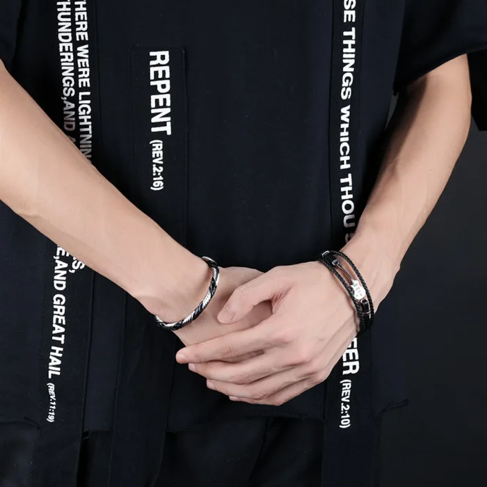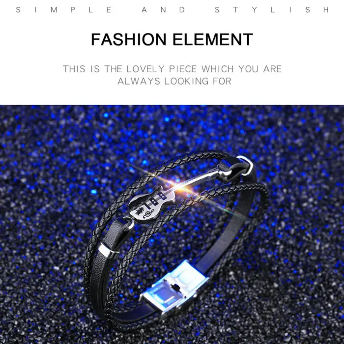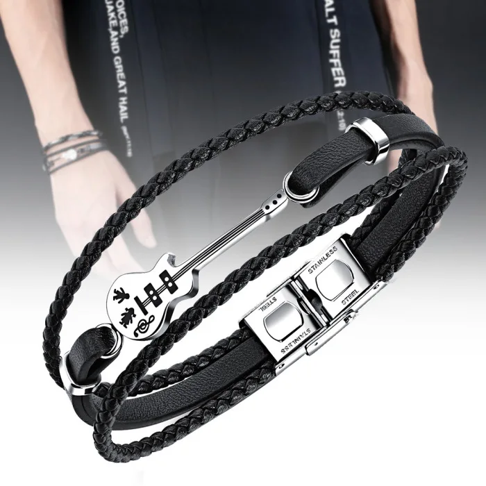 Новый 21 см браслет «гитара» кожаная плетеная веревка Многослойные подарочные браслеты для мужчин DOD886