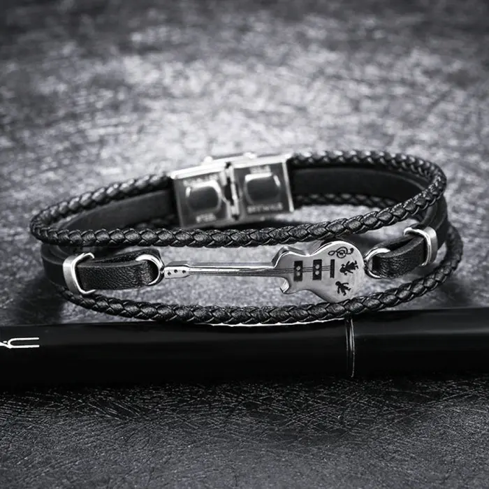 Кожаная плетеная веревка в форме гитары, крутая и модная для вас, вы будете падать уникальным и шикарным каждый день.