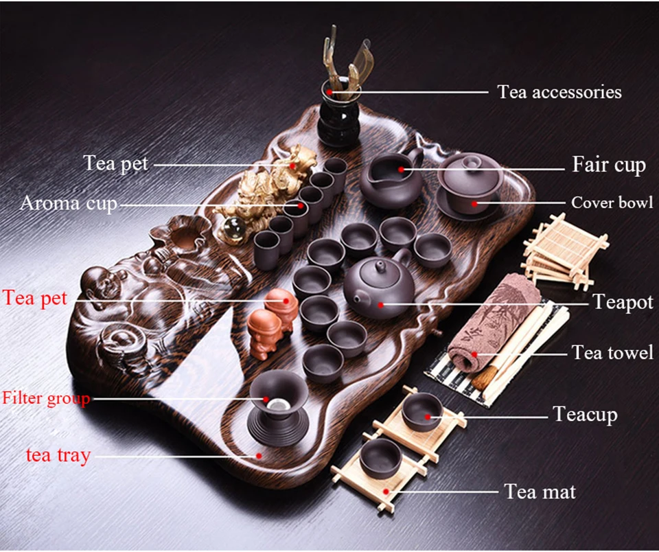 В комплект входит: чайный поднос, чайный горшок, чайная чашка, чайный питомец, чайный коврик и т. Д.