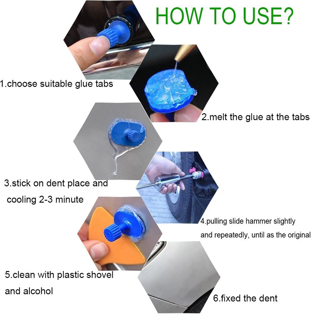Безболезненный ремонт вмятин: этот инструмент для удаления вмятин идеально подходит для дверей и повреждений от града. Эффективный и безопасный, чтобы выскочить вмятины, удаление вмятин автомобиля, но также может быть использован холодильник, корпус Мотоцикла, стиральная машина и повреждения от града. Нет повреждений на оригинальной краске.
