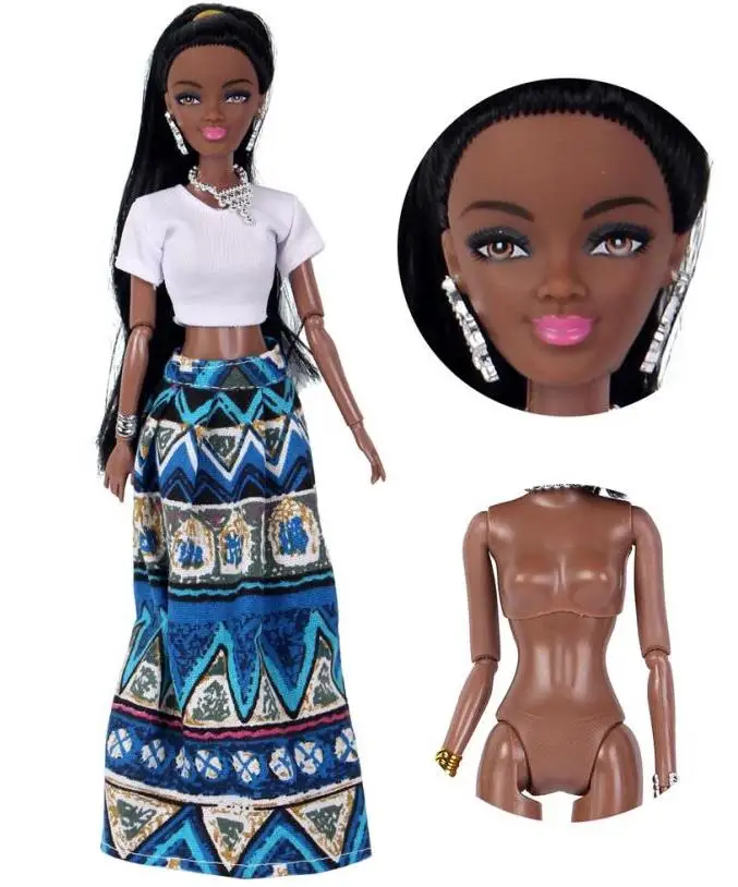 Милая Черная леди подвижный шарнир африканская кукла игрушка Черный ABS куклы игрушки хорошие подарки для девушки день рождения партии DIY одевание 31 см.