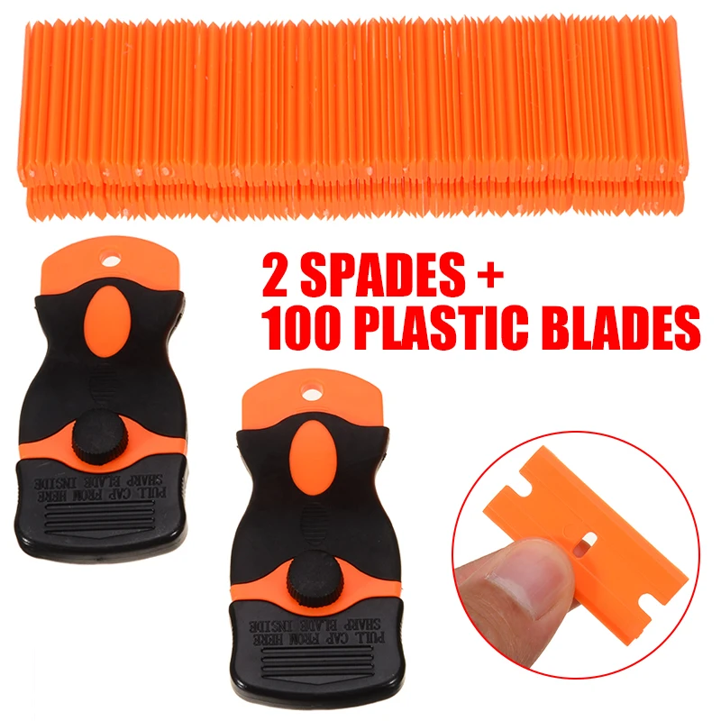 Оснащен широкими лезвиями для удаления наклеек или клея с автомобилей, пластика, внедорожника, деревянной посуды, стеклянных витрин.