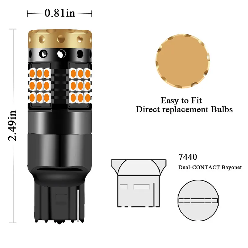 2 шт. CANBUS 12В-24В T20 светодиодный 7440 W21W 3030 36SMD задний указатель поворота автомобиля лампа авто свет DRL дневные ходовые огни лампы Янтарные