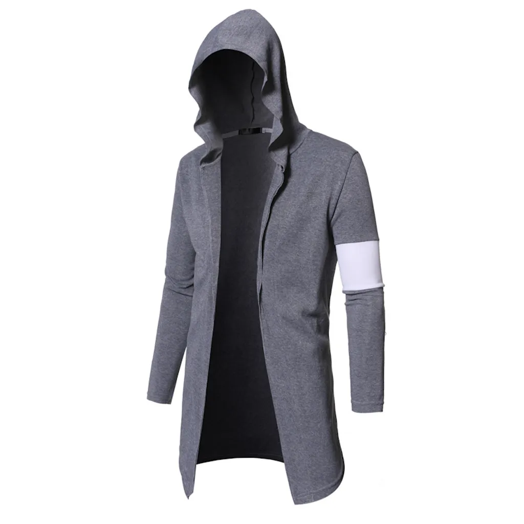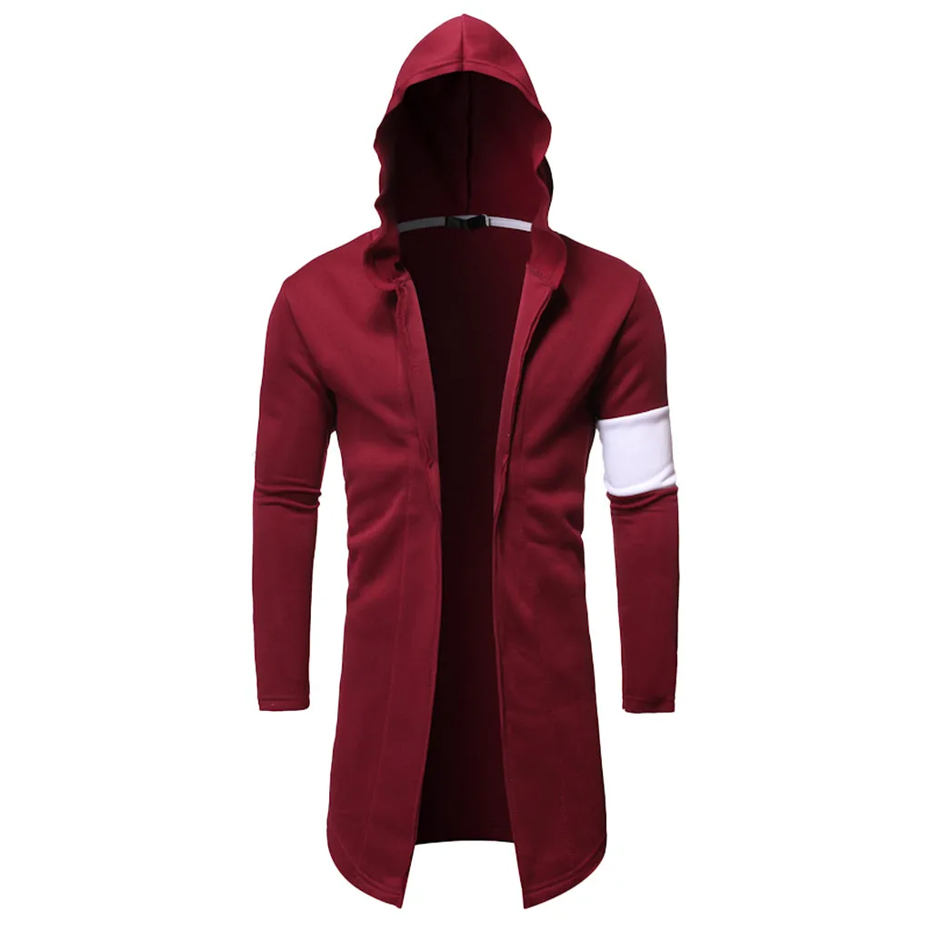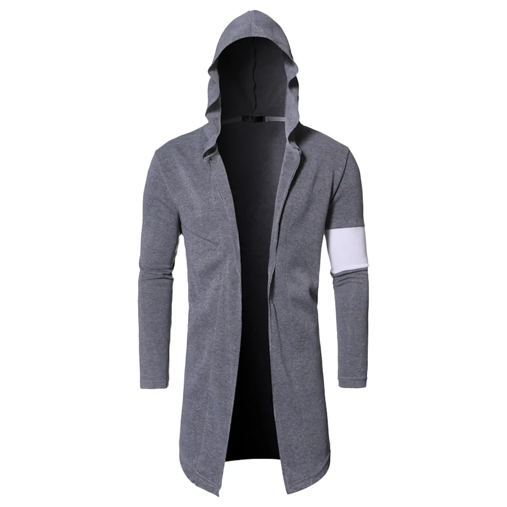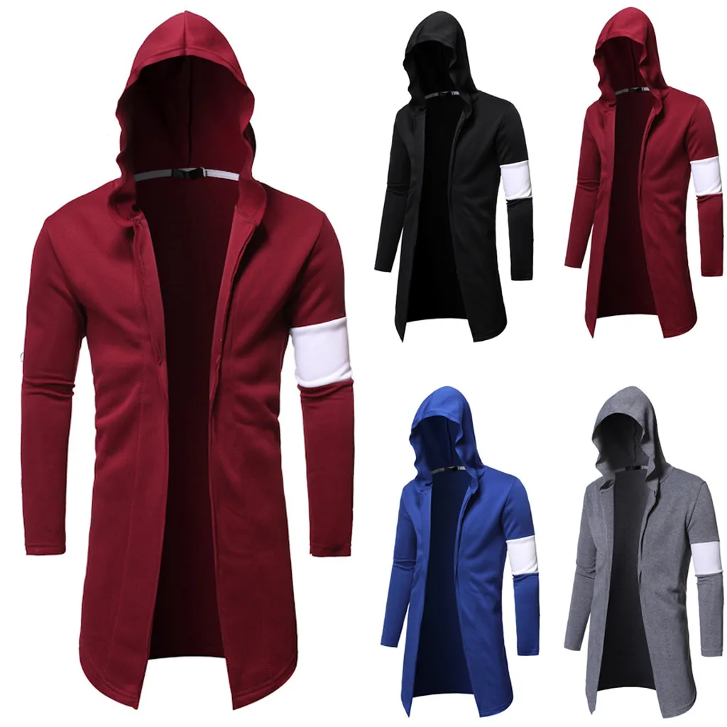 Мужской лоскутный Тренч с капюшоном, куртка, Кардиган с длинным рукавом, верхняя одежда, блузка
