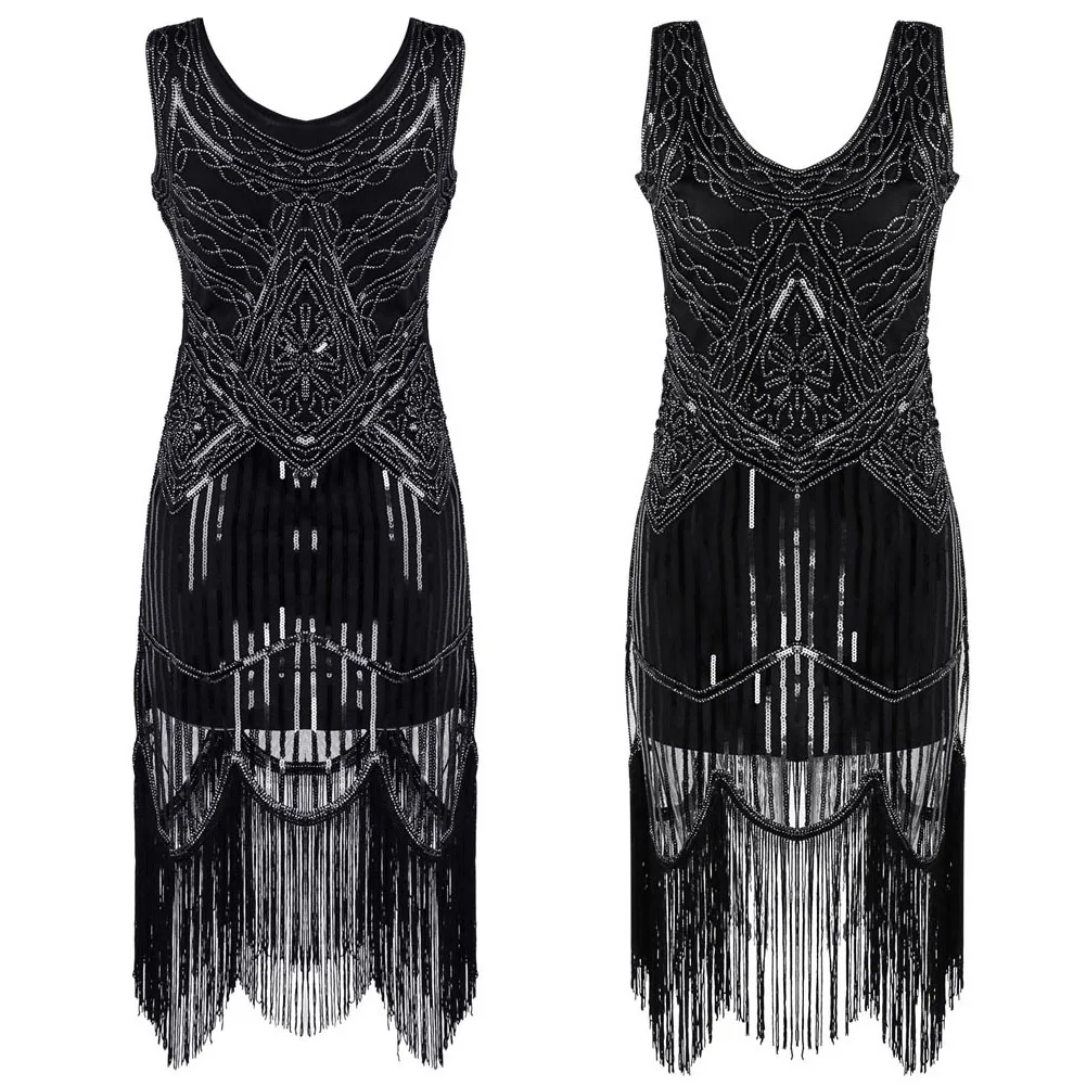 Винтажное платье без рукавов с кисточками; костюм; вечерние летние Клубные платья; однотонные черные модные элегантные Сарафаны с блестками; 2019