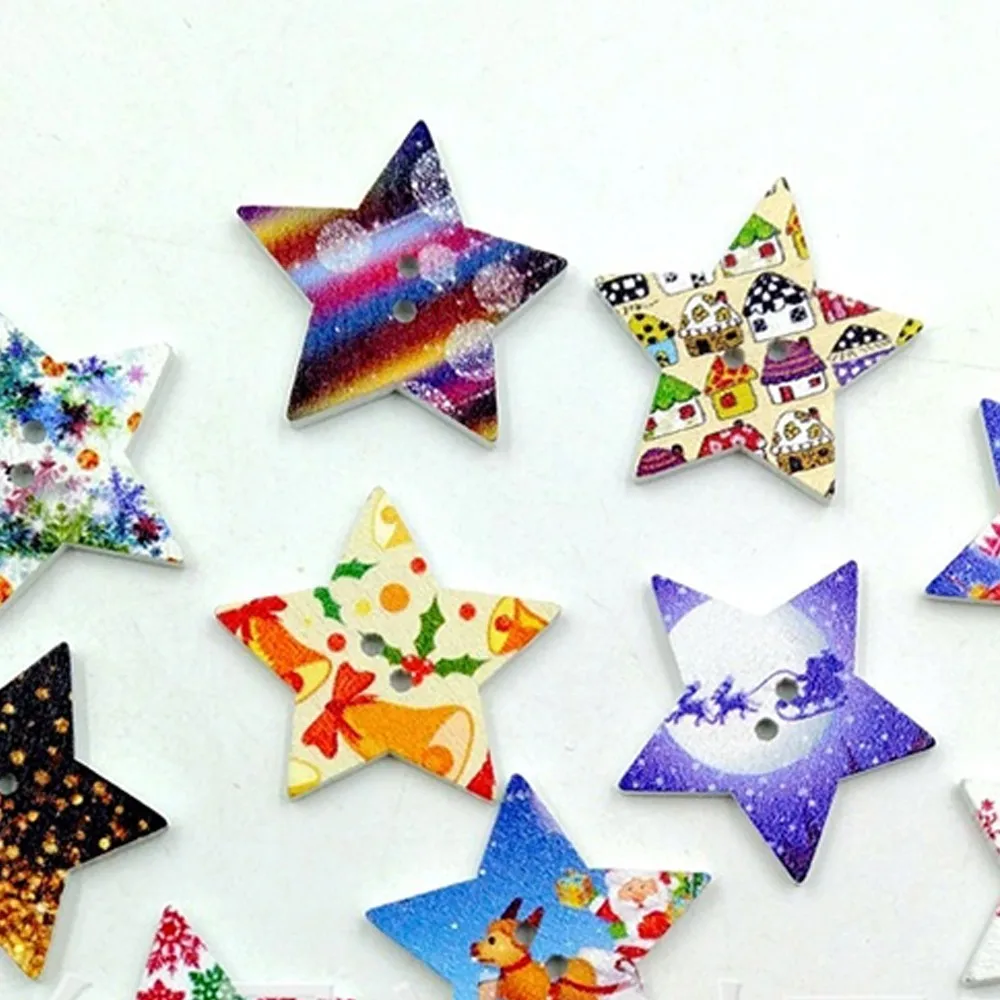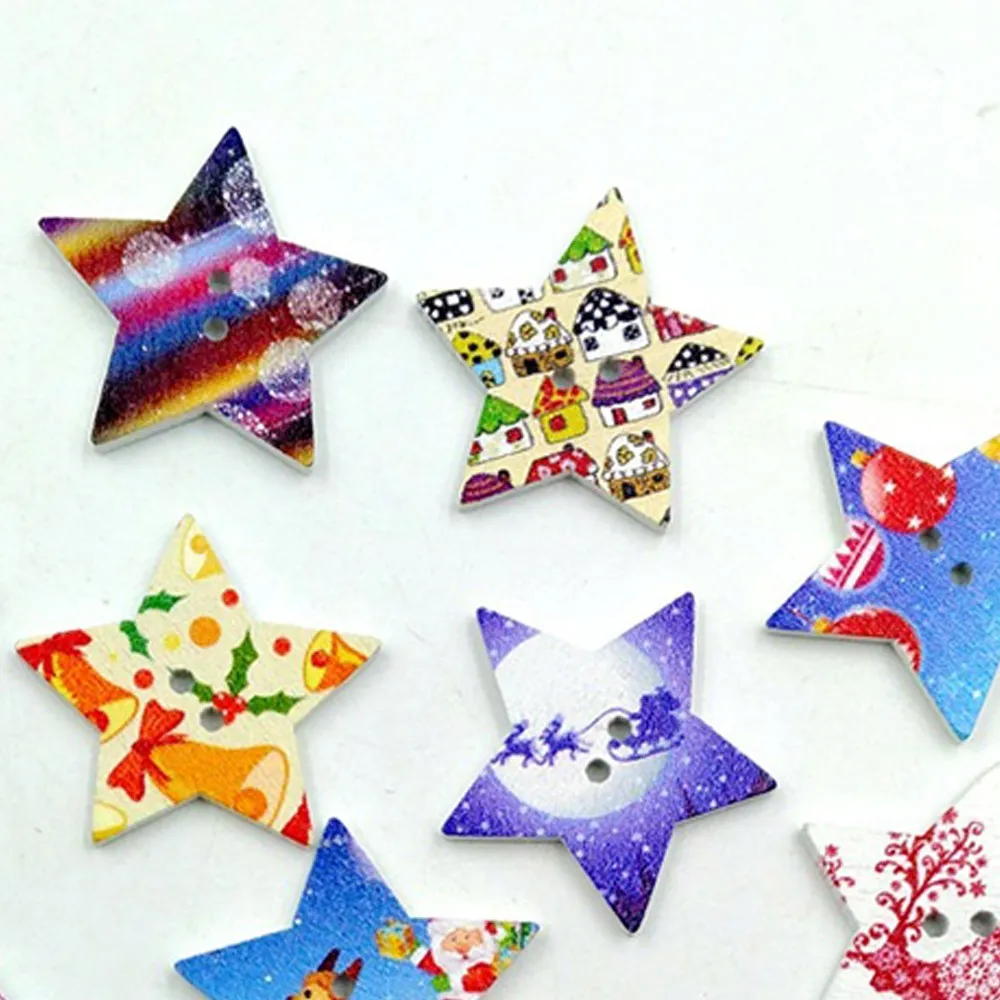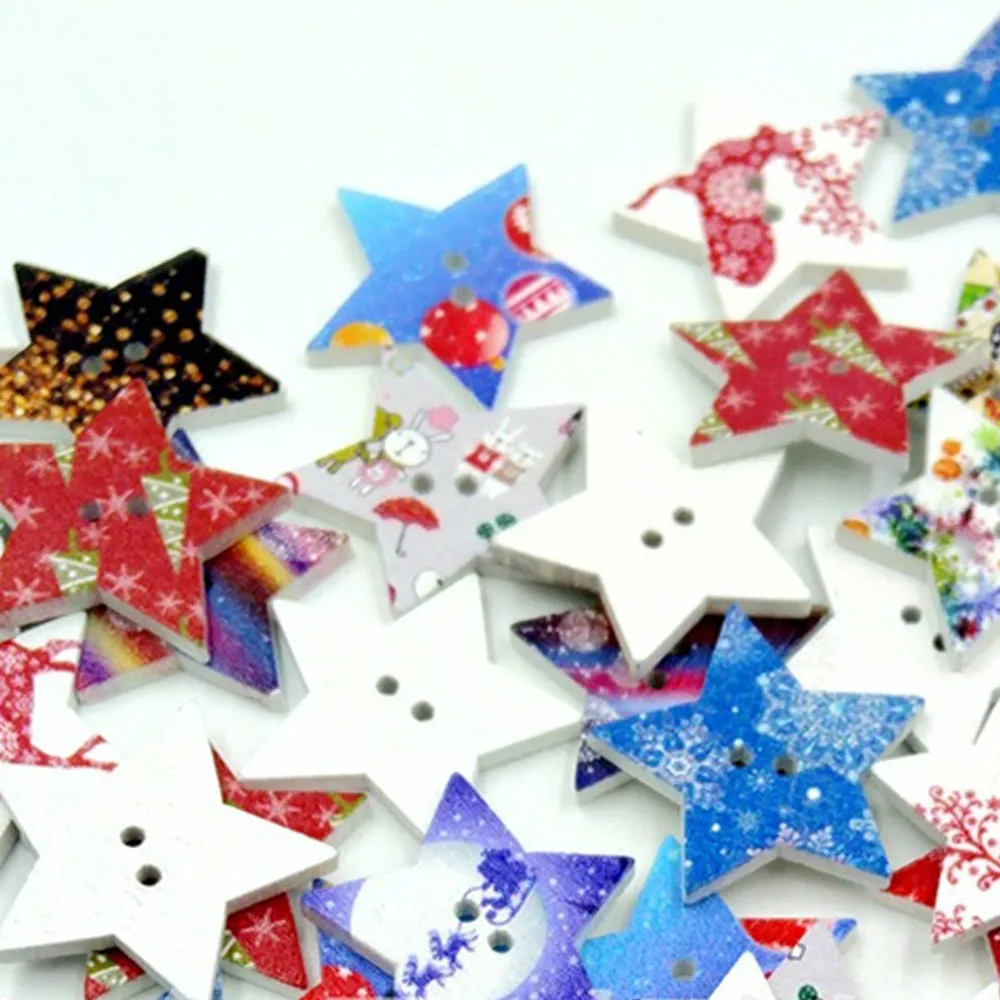 100 шт Рождественская пентаграмма Кнопка смешанные Рождественские звезды деревянные кнопки подходят для шитья, скрапбукинга украшения