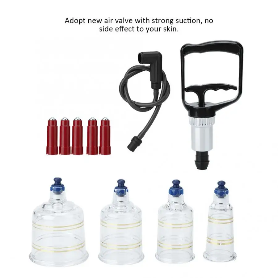 Гладкие края, увеличивают контакт и уменьшают боль. Окантовка толстая. Защита от падения и трещин, может быть стерилизована при высокой температуре. 19 различных размеров соответствуют точкам акупунктуры всего тела. Изготовлен из резинового материала, прост и удобен в эксплуатации и чистке. Новый Воздушный клапан с сильным всасыванием, без побочного эффекта для вашей кожи.